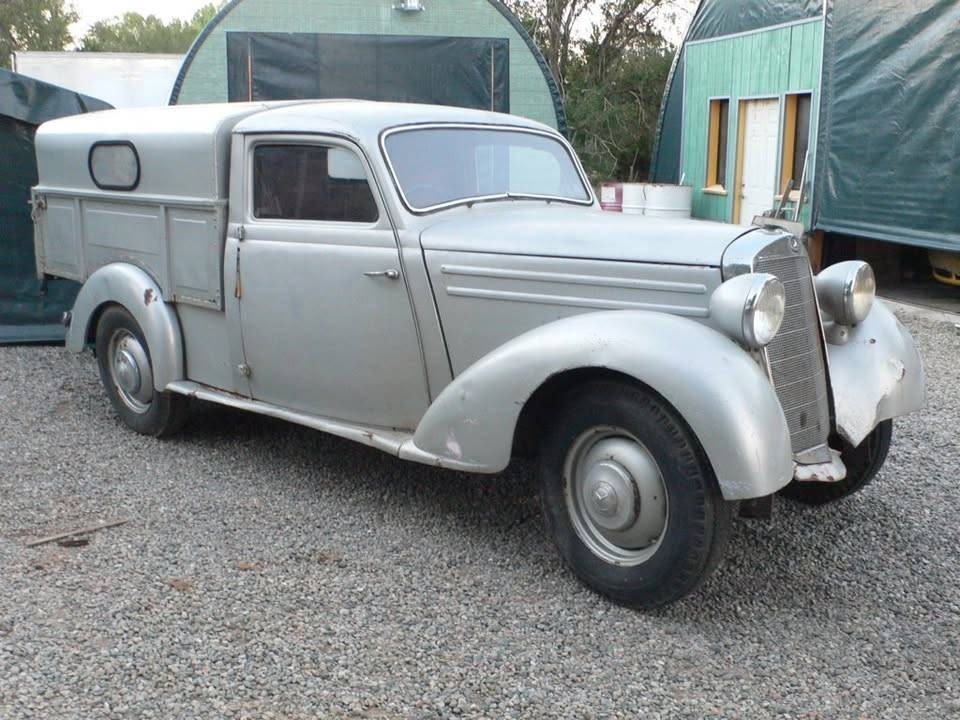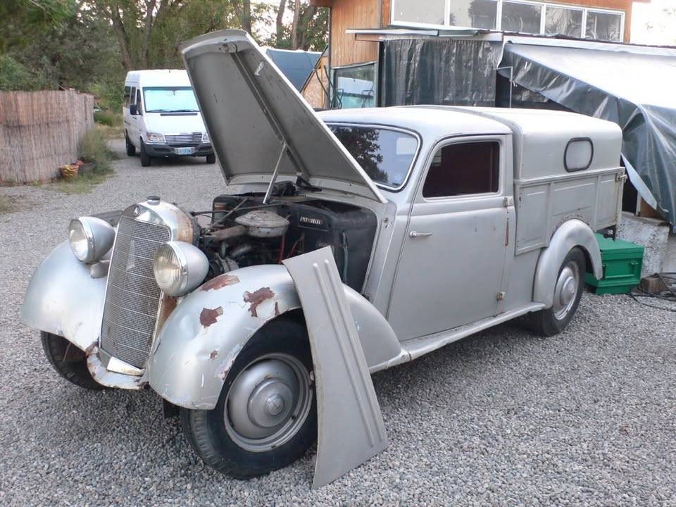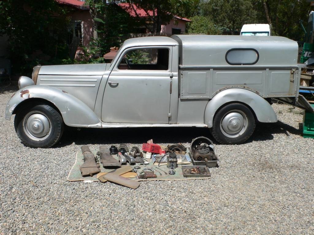 Very low production 1955 Mercedes Benz 170 S-V Diesel pickup truck. My last drive in this was about 1988 or 89 and truck has been in inside storage since. Engine still turns free and truck comes with many spares and all replacement parts to make it roadable, plus an original Mercedes dealership repair shop manual and a parts book with original part numbers for positive parts identification. While there is an existing title, it is an Australian title. The truck has never been registered in the United States. $45k OBO. Pickup in Taos, NM