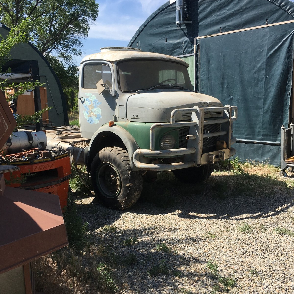 1967 Mercedes Benz LA 911 4wd. $35k OBO.Power from OM.352 Mercedes diesel engine (Naturally aspIrated) is transferred to the rear wheels thru a 5 speed trans., 3 spd. aux. trans., two spd. transfer case giving a total of 30 spd's fwd and 6 spd's in reverse (crawl- to- hwy. speed limited by low pressure front tires). This wide range of gear options is provided by the three different ranges offered by the aux. transmission (over drive/direct drive/ under drive). Originally a NATO van in N. Africa, was converted to a mobile field office for a core sampling company based in Holland. Made its way to B.C. Canada where I acquired the truck w/18,000 km, on the clock and converted it into my off-road Winnebago. I was in the process of converting it back into a work truck when struck down by an ischemic stroke that left me unable drive this beast. Great off-road work truck !! NO ELECTRONICS !!! DOES NOT REQUIRE ANY ELECTRICAL SYSTEM TO FUNCTION!! While it has a fully submersible electrical system, the basic function of the truck is purely mechanical and has no electrical needs. Odometer shows true mileage to be 78,325 km (48,669 miles).Included in this sale is an additional low mile OM.352 engine, Transmission, Two speed transfer case, and Front Differential.Comes with a set of Workshop manuals, Parts manuals and binder with full documentation of modifications.Lots of spares.Also includes a custom built 8ft. x 8ft. flatbed trailer of equally stout construction that matches the truck's carry capacity. Two previous owners.OM.352 engine, 5 ton, 4 wheel drive, all terrain truck. $1000.00 Deposit due thru e-Bay at time of purchase. Balance of sale price due within 7 days of listing end date. *$1000.00 Deposit is non-refundable.*