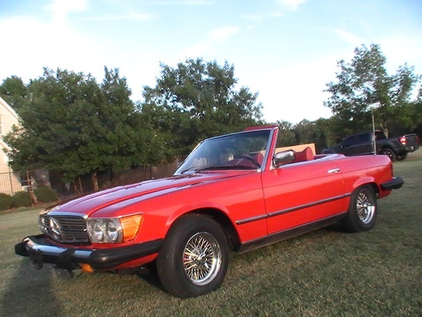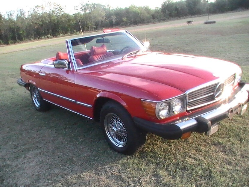 Owner told me 2 owners. Car is extra nice drives better than my new car. Quiet and very relaxing. Engine runs fine-no leaks, clean. Has Kenwood stereo with blutooth listen to your own music. Interior very clean no tears, other than small cracks in dash. Spoke wheels, nice paint, door ding not bad, someone put the wrong color paint on it but I do have some touch up paint. Car has a few very small paint chips but you can hardly tell it. I had the AC looked at and it needs a compressor. They are 250.00 to 400.00 on ebay. Car shifts good, sounds good. No rust on this car anywhere. If anyone has any questions or wants to come see the car call me at 512 914 5115. Ed Located in Austin, Tx 4 miles off IH 35 Also the hood has white from the clouds so just to let you know. I will take offers on it, but be practible.I will have the top on in a few days. It takes 2 people to put it on and off. Will put on pictures but top is also in great shape.Pay upon pickup, no deposit required within 10 days https://www.automobile-catalog.com/car/1976/1469615/mercedes-benz_450_sl.html