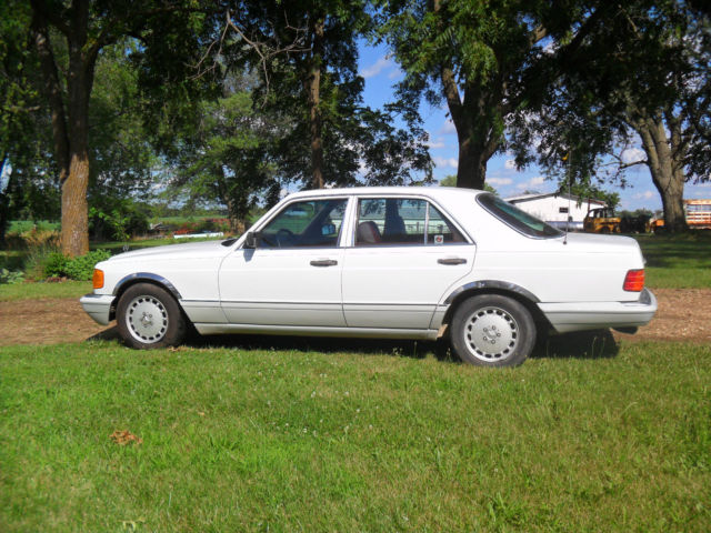 | 1989 Mercedes 300SE Excellent condition inside and out; seats. dash. headliner without cracks or rips. Mechanically everything functions as it should - cold air. cruise. etc. No rust. Glossy white paint. One spot in the windshield with a large rock chip. |