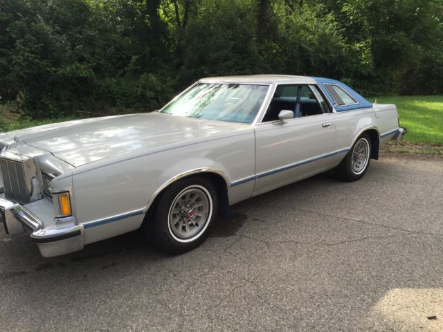 for sale 1978 Ford Mercury cougar XR7 75th anniversary 2-Door hardtop great condition always garage kept sense new, new tires 72,000 the car had 71,000 miles in 2003 in 2016 the car had 71,850 miles only driven 850 miles in 13 year, original miles factory AC cruise control original 8 track player, grey with blue pin stripes ashtrays have never been used, clock works great, power antenna,starts right up shifts great car has always been well cared for as you can see in the pictures, there are some chips here and there very small nicks in the paint job also there has been some touch up work near the bottom of car on the sides were may be rocks ect, hit car Over all the car is in great condition all the chrome interior is in really good condition the undercarriage is just as clean as the rest of the car I will try and add pic, the door panels have a few cracks on the ends were it closes I will delete a few pics tomorrow and add some of the minor damag, also have original with the original cougar key chain emble, if you have any questions please email me thanks or call 740-418-9434....The only reason I'm selling mr car is because I need an attorney for court and there expensive my trials getting close I hate to sell it I just bought it for more than I'm selling it for but I'd rather lose my car than my freedom