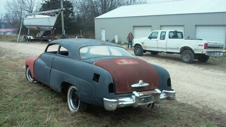 | this is a 1951 Mercy 2 door Sadan with a 3 inch chop top.It has been sand blasted and is in primer dose have some rust..It has most of the trim and has some other parts.has the garnish molding and door tops. It also has a clear title. It dose need rocker pans and floor pans.if you have any questions or want need more pics just ask.This is a good project. Buyer responsable for pickup |