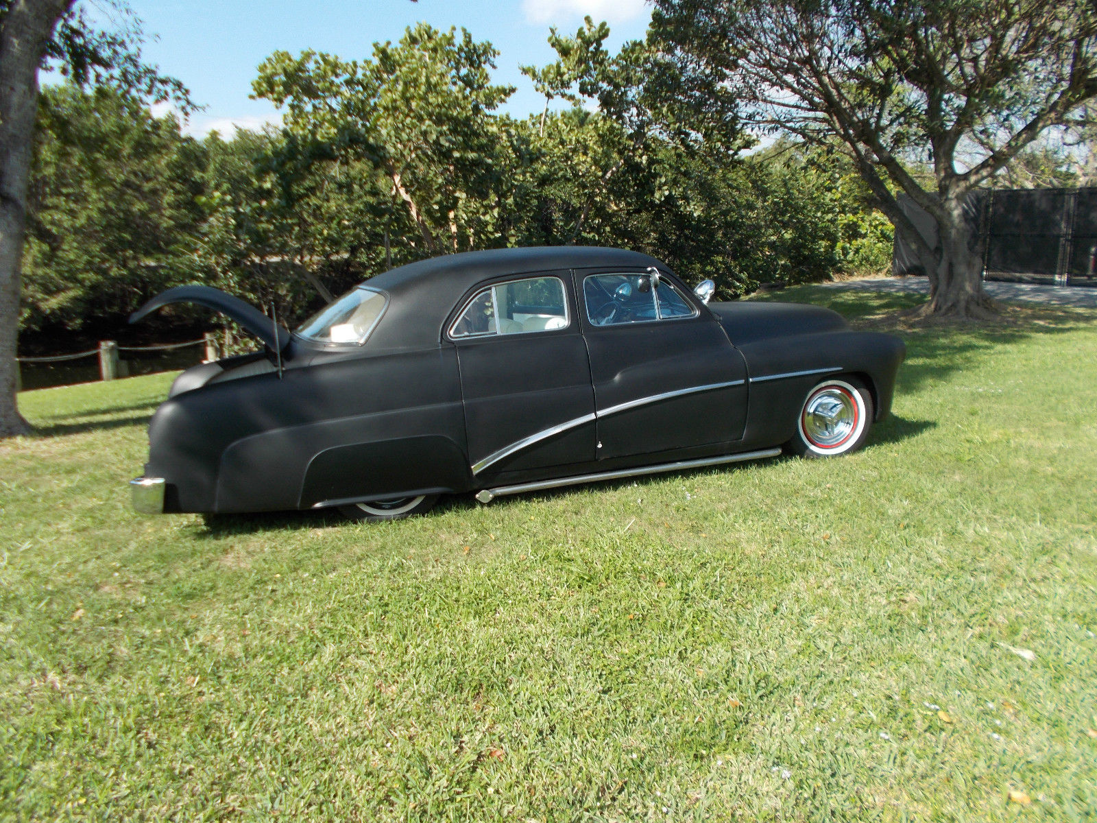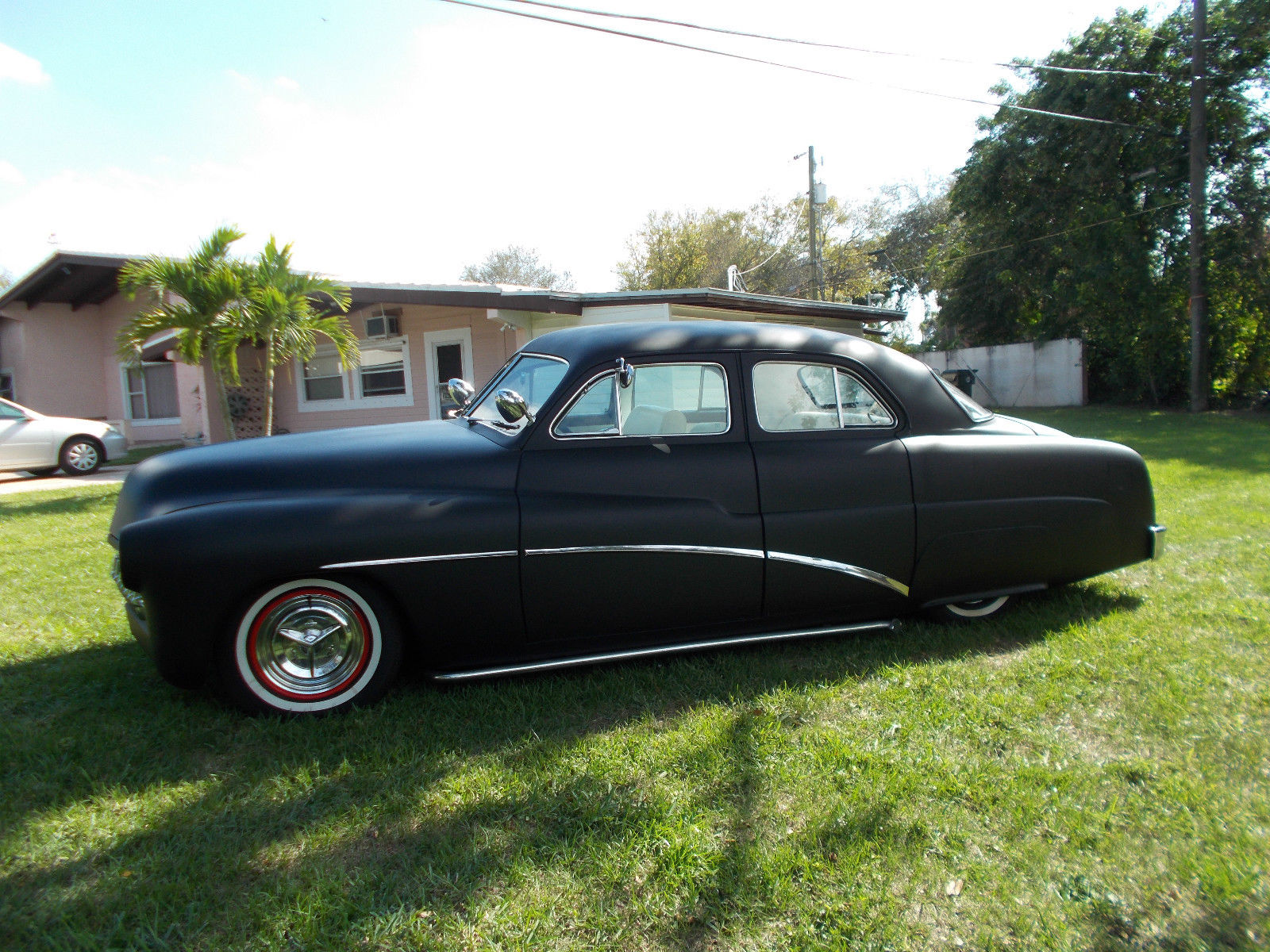 1951 Mercury 4drsdn,Flat Black Paint Rolled and Pleated White Interior,P/S, intage A/C and Heat 350 Chevy Motor and Trans, uto Headlights and Tail;lights Frenched,No Door Handles, lear Florida Title 61 Corvette Grille with extra teeth. Trim Buick Style,Lowered Suspension |