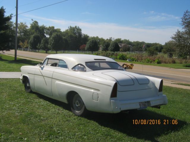 | 1952 Mercury 2 door custom 3" chopped top/pancake hood. 1978 Mercury 351 cid motor. C-6 Transmission. Mustang 2 front suspension and steering. Granada rear suspension. |