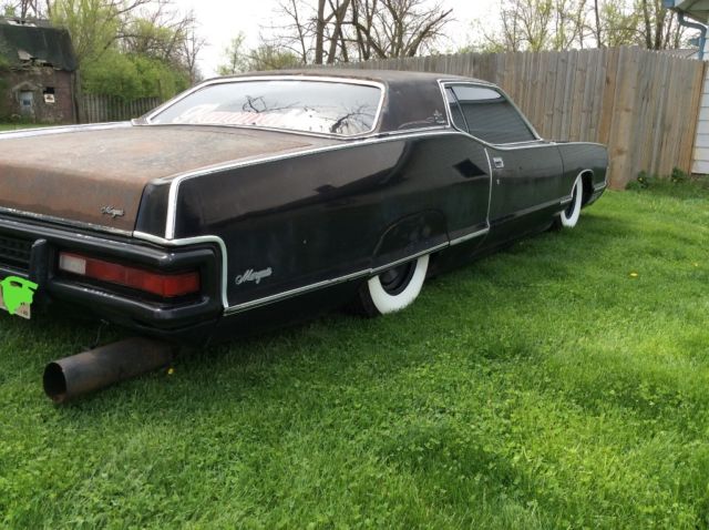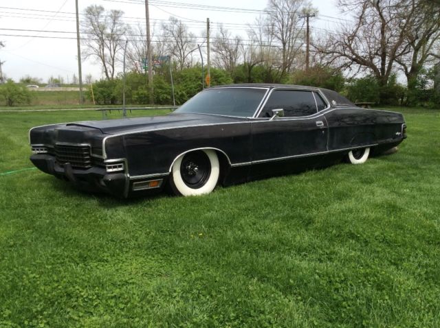 Up for sale is my 72 marquis 2 door hard top on bags and with flamethrowers! Runs good, drives good, shifts good, rides decent, 429 with edelbrock carb, manual choke, c6 auto. Plenty of patina and pin stripping. A/C, all there, not working, hide away lights work right.all lights, turn signals, power seat works, passenger window quit working, probably the switch, new gears in the rear windows, good spare, Good heat/defrost, and starts in pretty cold weather. Has 74000 miles, original southern car, very little rust, only what is pictured. 2 viair compressors, manual valves and 1/4 inch line, so no hopping! It's a cruiser anyway. Sits real low, new Coker wide whites and crager wheels with aluminum center caps. Old school flame throwers, operate by choke and kill switch, shoots a pretty good flame, even bigger when it has the giant exhaust tips on it. I have driven it several thousand miles with no issues, did a round trip to Louisville last year for beatersville, no problems. Drivers front seat is torn up, needs new headliner, needs a drivers hood hinge. Any questions ask. Mostly looking to sell, I have too many cars and need to liquidate a few. These big cars are getting more and more popular with shows like mobsteel and counts customs, get one of the coolest ones now, before your priced out of the market!