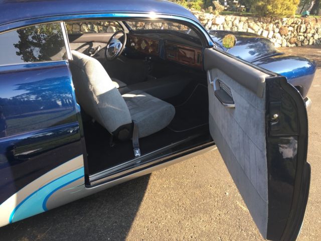 Chopped top, ghost flames, interior flawless, chevy 350 motor, 700r auto transmission, disc brakes, automatic trunk opener, door poppers(handleless), there is absolutely no rust on this car. Only has less than 3,000 miles on it science complete restoration!!! over $85k put in to this car. |