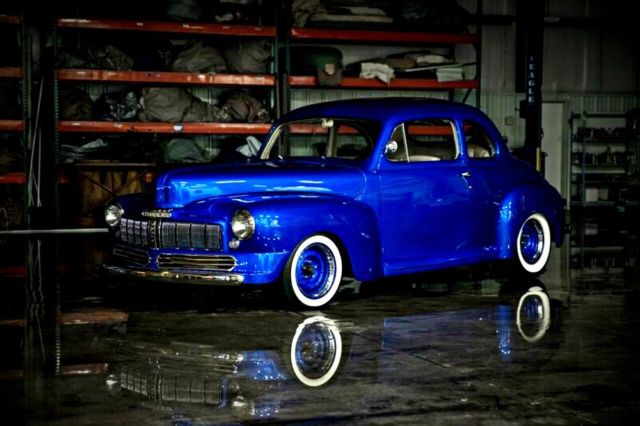 This is a Stunning and Rare 1946 Mercury Fat Fender Street Rod, Totally Rust Free from Arizona. This Beauty has a Camaro Front Sub Frame, Power Disc Brakes, Small Block 350 GM motor, 350 Turbo Transmission, Power Rack and Pinion Steering, 10 Bolt Rear End with 3 Link andFully AdjustableBillet Coil Over Rear Suspension. The Metallic Blue Paint is Show Quality and Carries all of its Original Body Panels with no signs of and rust ever! No Patch Panels Ever! The Bottom of the car is detailed in a satin black with no undercoating, original floors show perfectly and are also rust free. All of the Stainless and Chrome are in Excellent Shape and so is the Beautiful Dash. Very Nice Modern Leather Interior Shows Well.