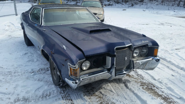 | I have a 1971 Mercury Cougar XR7 hardtop 429 CJ Automatic with Ram Air. Body has rust in quarters and truck but floorboards are pretty solid. Torque boxes are good and so are shock towers. It currently has a NON CJ 429 in it. I have a correct block and heads for an additional $1000. 00. The car is supposed to be Competion Blue with a black vinyl top. C6 auto still in it . 325 traction loc. air rear defrost. tinted glass and am radio. Check out the Marti report I have. I also have a very solid 351 XR7 parts car for $1000. 00. any questions email or call me at 317-625-3150I have the original Ram Air Assembly!email me for more pictures |