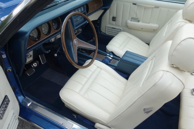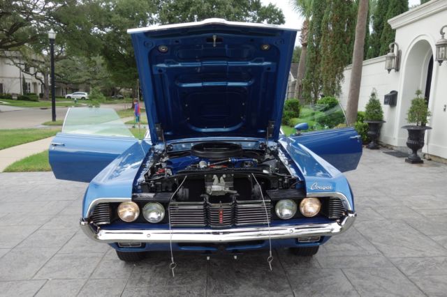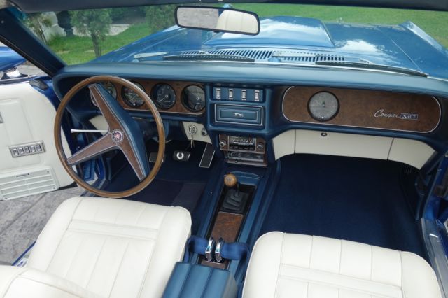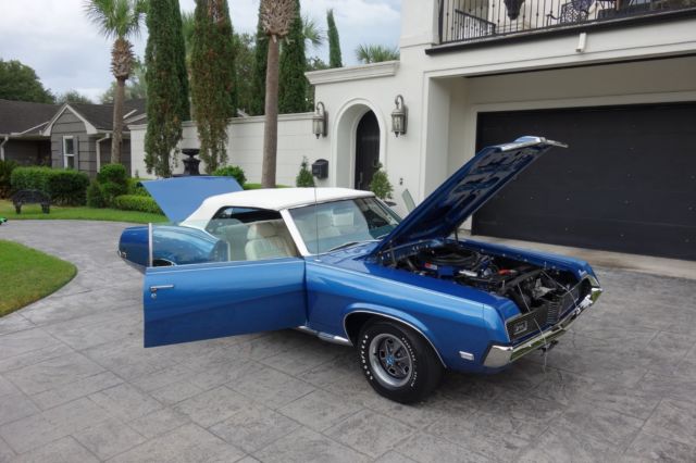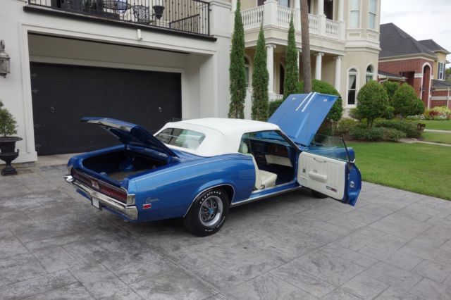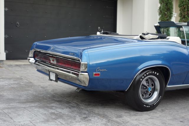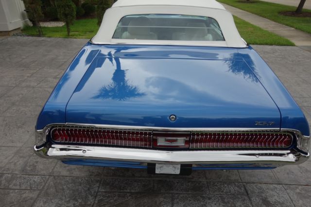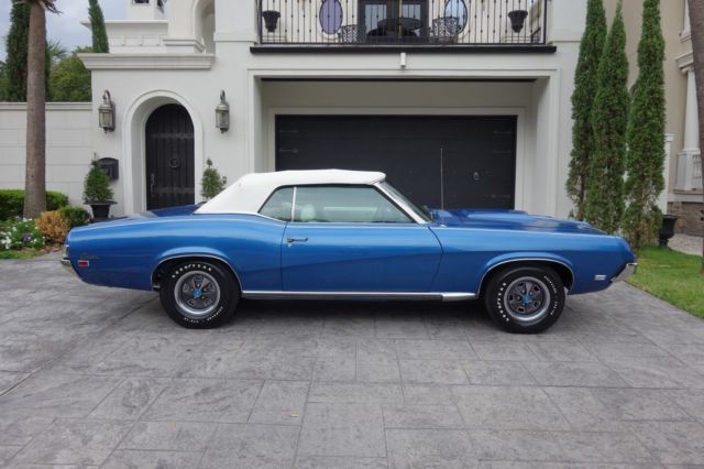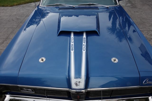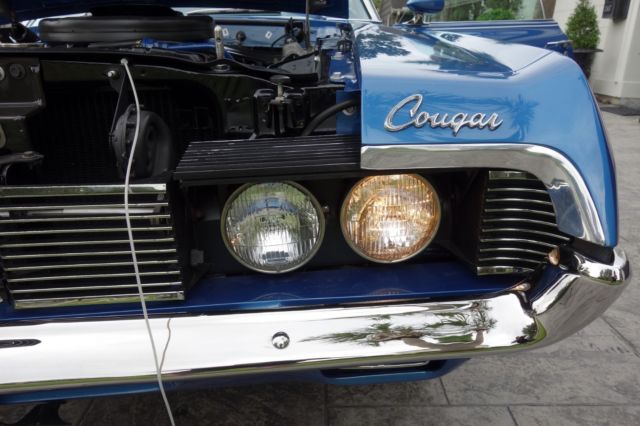 1969 Mercury Cougar XR-7 Convertible, 428 CJ V8 engine, Ram air induction,4 speed close ratio Manual transmission, this cougar retains its original drive train, 1 of only 31 made 1969 XR-7 428 Ram Air Four Speed Convertibles! less than 10 are known to still exist!thisbeautiful frame off restoration was done by Tom & Kurt Lawrance out of Danville, Virginia and finished around 2014,I believe this car to be 1 of 4with the blue w/ white leather & top AND the only 1 of 4 to have 3.50 rear gear ratio, this car was built in Dearborn Michigan on November 26th, 1968, was sold onDecember 7th, 1968, dealership was Lindskog Mercury Inc. Libertyville Illinois, exterior color is Bright Blue Metallic (Ford #3077-A) and interior is white leather bucket seats w/blue appointments, white power top, traction-Lok differential, goodyear F70-14 wide oval belted tires, power windows, center console, power front disc brakes, power steering, power brakes, AM/FM stereo radio, deluxe belts/warning lights, styled steel wheels, parade boot, hide away headlights, body is laser straight, paint is beautiful and show quality, undercarriage is equally as beautiful, chrome/stainless look great, all seals/moldings are good, interior is all correct and very nice, the cougar starts every time and is a blastto drive, thisis truly a very special car! this cougar will enhance any serious car collection! this car can be taken to any car show event and not only draw big crowds but bring home a trophy! I have take some good videos of the car so send me your email addressrequesting to see the videos, I am also happy to help the new buyer arrange transportation to buyers home town so just ask me to help...……….. the cougar is in the warehouse so I couldn't get the actual mileage showing on the odometer so I just put 1234, however I will add the miles showing on odometer tomorrow. |