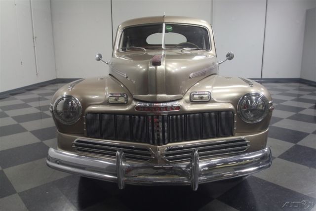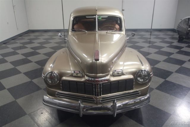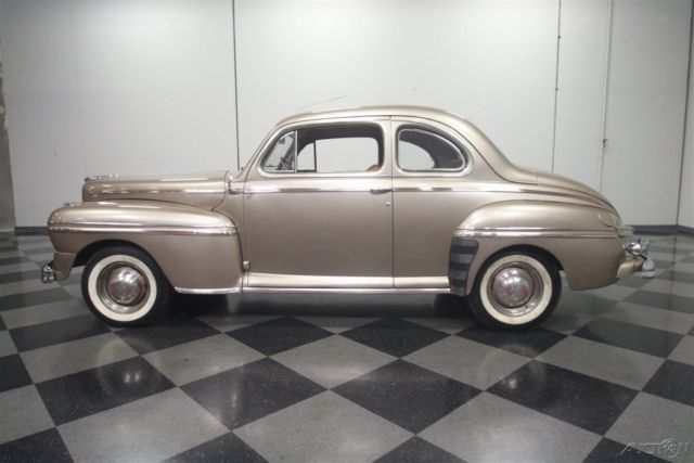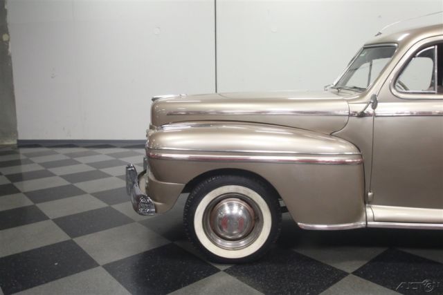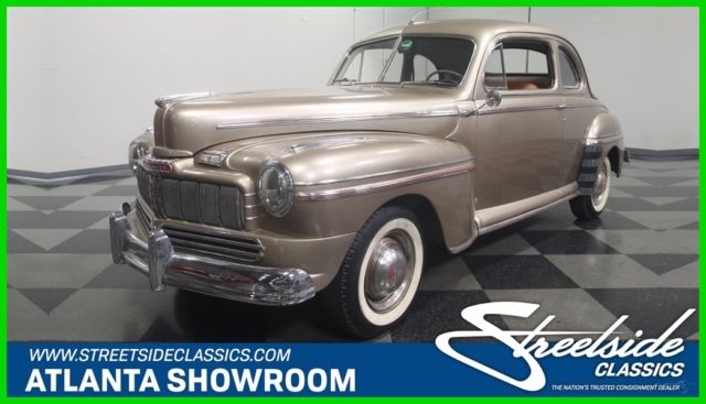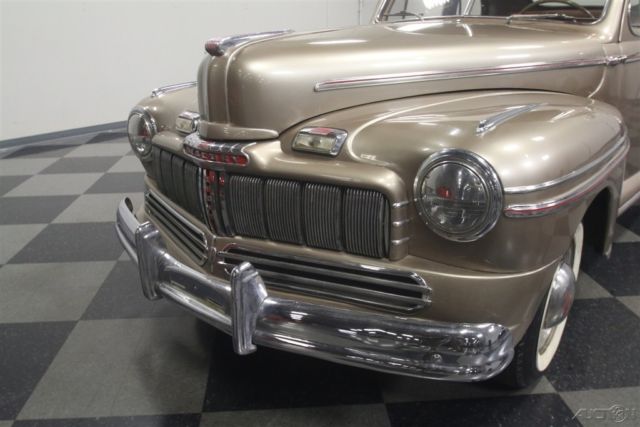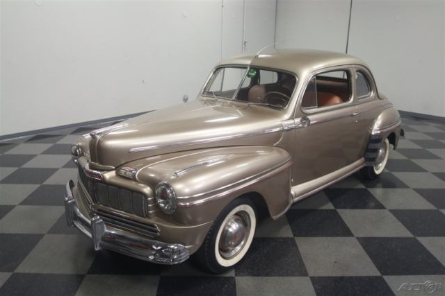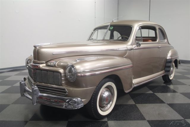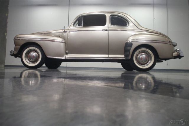 Flathead Fords are still some of the most entertaining old cars you can own. Quick, agile, handsome, and rugged, cars like this 1946 Mercury coupe have been favorites for decades because they do everything well and look great doing it. Owned since new by the same family in warm South America, this handsome Mercury coupe looks like it just rolled out of an old black and white photograph from the late '40s. The basic profile is pretty much the same opera coupe that Ford was building before the war, but the unique Mercury front end gives it a clean, grown-up look is one of Ford's better designs. Paint and bodywork are in decent shape and it might have been repainted decades ago, so there's plenty of patina but nothing that needs immediate attention. Instead of metallic two-stage urethane, it has a softer shine that looks like period enamel, another sign that the car has been loved all its life rather than squirreled away as a collector's item. Yes, there are plenty of nicks and chips, but patina has to be earned and it works rather well here. Panel fit is quite, the big pointed hood fits well, and the light color reveals neat details like the body lines around the fender trim and the oval rear window. Lots of stainless trim and a few chrome bits, all of which is in good order, make it look far more expensive than it is. There's a surprising amount of room in the coupe's bright interior. Brown leatherette upholstery has a very 1940s look and the patterns are simple and unpretentious. Matching door panels, tan carpets, and a correct headliner give it an authentic look. The instrument panel has a large, round speedometer and four smaller auxiliary gauges, all with a jaunty '40s font, and there's a matching clock in front of the passenger. Radios were still expensive options in 1946 and sadly this one doesn't work, but this car does carry an under-dash heater/defroster unit that should be quite effective. The steering wheel is in shockingly good condition, including the chrome horn ring, and the plastic center grille for the radio speaker is also in nice shape. The trunk is positively massive, with cardboard side panels and a full-sized spare tire assembly. But the real reason these cars are perennial favorites is the 239 cubic inch flathead V8 under the hood. It's rated at just 100 horsepower, but it feels like much more than that out on the road. Inhaling through the stock 2-barrel carburetor and oil bath air cleaner, it has a distinctive sound that Ford fans have loved for years. Twin coolant hoses from the cylinder heads give it a nice, symmetrical look and later flatheads like this have proven themselves for decades with unbeatable reliability. It remains quite stock and while it isn't detailed, it is instantly recognizable and there are a lot of recent parts, including all the usual tune-up stuff. The 3-speed manual transmission with column-mounted shifter has well-chosen ratios to make the most of the V8s power band and the original banjo-style rear end hangs out back. The undercarriage is tidy if not detailed and it's always nice to see an old car riding on correct bias-ply tires for the right look, although these should probably be replaced if you're going to do any serious driving. Very affordably priced, this 1946 Mercury is one of those great old cars that will make you smile every time you fire it up. Call today!