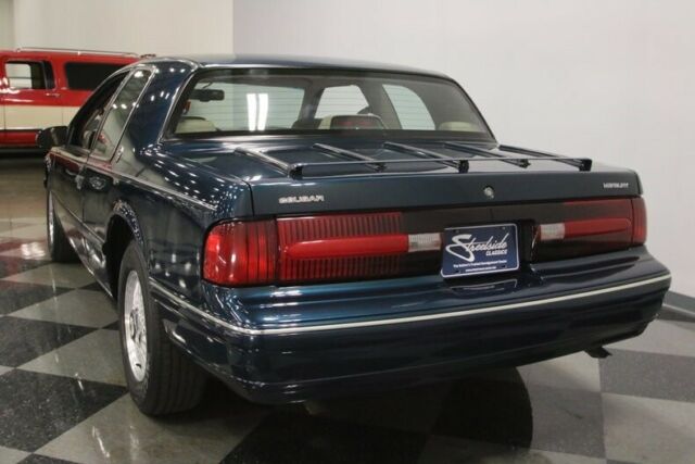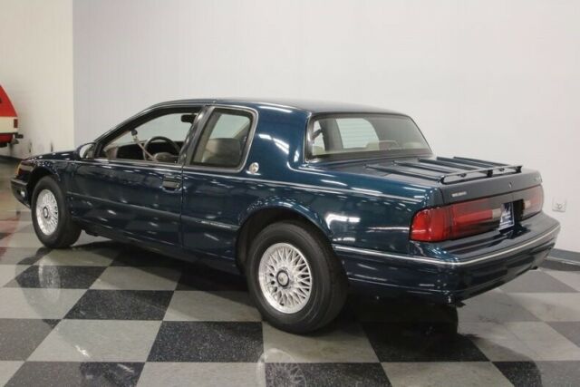 When the 7th generation Cougars hit the showrooms, even Mustang guys started looking over their shoulders. And this clean 25th Anniversary 1992 Mercury Cougar represents the pinnacle of the breed, a car that combines pedigree, luxury, and modern muscle car performance, all complements of the venerable 5.0L High-Output V8. Don't knock it until you've tried it, this is a very special car! The "Aerocats" were a love-it-or-hate-it proposition, but I, for one, always admired their smooth good... looks. Not in-your-face like the Mustang, or quite as mulleted as the Thunderbird, the Cougar was for someone who had outgrown his boy racer instincts but still wanted to turn tires into expensive smoke. Tourmaline Green was the only color that came on the special edition 25th anniversary car, and for those of you who know what it is, it's a very special find. The finish shines up very well for its age and this generation's design is arguably the best of all, with slender headlights, a bold front fascia, and a special issue luggage rack that gave the Cougar a far more sophisticated look. And for a car that just passed its 27th birthday, it's in really good shape, with only modest signs of use and age, nice trim that hasn't been baked by the sun, and paint that looks better than it should for its age. Obviously, this car has always been treated as something special and it's ready to either continue having fun or go to the next level and get full-blown preserved. If you've always wanted one, this is a great place to start! The 25th Anniversary interior gets a bit more serious about comfort and style, with Mocha Tan leather and Ultrasuede upholstery with contrasting green carpets, gusseting, and seat piping. Special issue floor mats with the 25th Anniversary emblem stitched on them were part of the package as well, and this Cougar remarkably still retains them after all these years. The Cougar got heavily bolstered power buckets for driver and passenger, and they definitely work to hold you in place. Furthermore, the upholstery is in great shape with only a few signs of wear, mainly on the high-traffic side bolsters. The beautiful green carpets are still plush and door panels (replete with special issue leather door accents for the 25th) look similarly fresh, again suggesting that this car has been maintained, not simply owned. Everything was standard on the Cougar, including power windows and locks, A/C, cruise control, and a tilt steering column, plus a full array of gauges keep an eye on all the engine's vitals. There's also a decent-sounding premium sound system with cassette player, and the Cougar has a positively giant trunk compared to its Mustang cousins. The famous 5.0L HO delivered V8 grunt that out-performed most American-made motors of the era and pulls this big 2-door coupe with snapping ease. It remains bone stock, but you'll find stock is plenty entertaining on the street, with acceleration available anywhere on the tach and full pop on tap before you can even get your foot to the floor. The engine bay is quite clean, more evidence of a good life, and it's nice to see one that hasn't been modified. Paired with a slick-shifting AOD 4-speed automatic overdrive transmission, the Cougar is a peerless high-speed cruiser and a formidable car on twisty roads, where the athletic all-independent suspension can really go to work. Add in factory 4-wheel disc brakes, performance 3.08 gears, and a burbling dual exhaust system, and suddenly this car makes a 5.0 Mustang look pretty basic. Unique 15-inch spoke BBS wheels with hexagonal center caps were fitted on all 25th Anniversary Cougars, and these look fantastic and carry 215/70/15 performance radials. For you Ford-Lincoln-Mercury performance guys who grew up in the '80s and early '90s, you know this is a special car. Everyone else, take notice, because this rare limited edition Cougar is the biggest performance bang for the buck in our showroom. Only 5,000 were ever believed to be made, so this may be the only chance you have to snag this modern collector car. Call now!