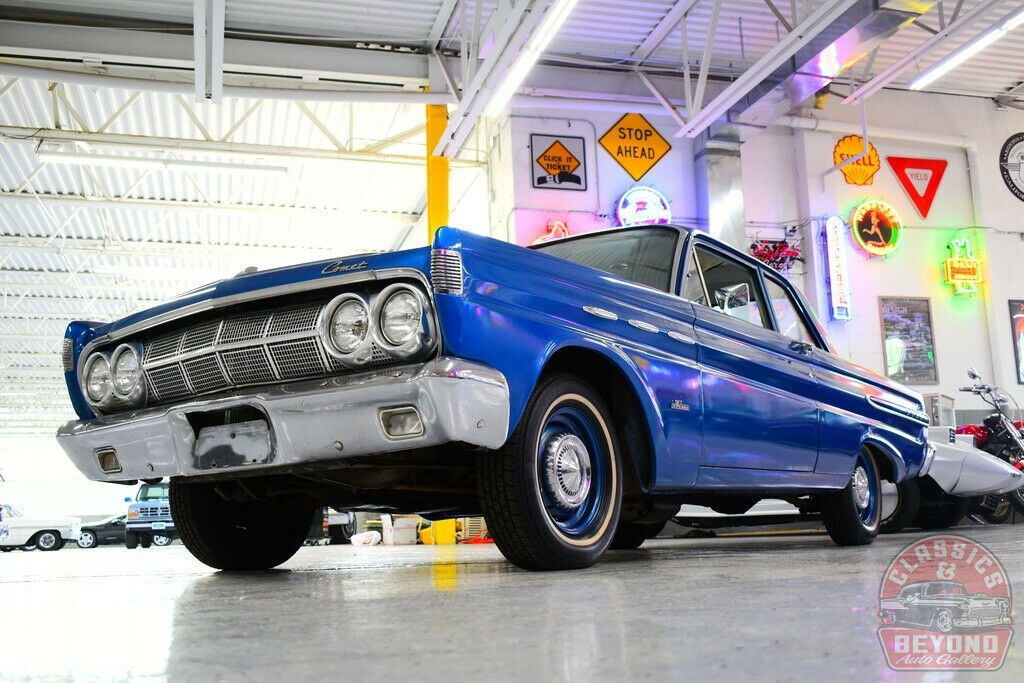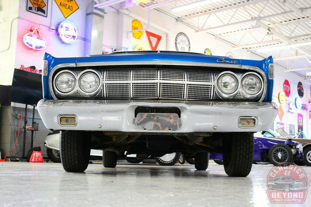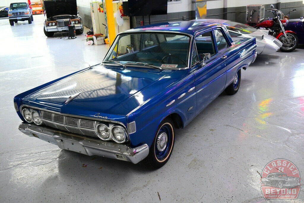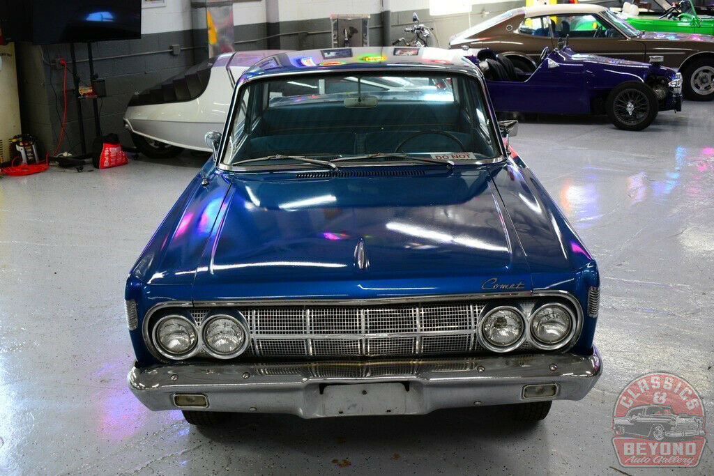 Please visit www.ClassicsBeyond.com to view all the pictures of this vehicle. History of the Mercury Comet The 1964 Comet was redesigned with a much more square shape, though it was still built on the same unibody as the 1963 model. Its basic lines were shared with the new Falcon, but the front grille used styling similar to that of theLincoln Continental. Along with the redesign, the model designations were changed. The performance version was known as theCyclone, replacing the previous S-22. Then in descending order of trim levels were theCaliente,404and202, replacing the previousCustomandbasemodels. The 2-door station wagon bodystyle was discontinued. The top-of-the-linestation wagoncontinued to be known as theVillager. The base 144 cid six engine was dropped and the 170 cid six became the new base engine. The 260 V8 was available at the beginning of the production run, with the new 289 being available mid-year. Due to the success of the full size Ford and Mercury "fastback" roofline introduced in mid-1963, the Falcon and Comet 2-door hardtops got a similar roofline with sharper corners. For 1964, Ford produced about 50 ultra high performance lightweight Comet Cyclones, equipped with their racing two-carburetor 427 engine, similar to their cousin, theFord Thunderbolt. To avoid competing with each other, the Thunderbolts ran in super stock on 7-inch (180mm) tires, but the Cyclones were modified to run in A/FX on 10-inch (250mm) tires, where they were as dominant as the Thunderbolts were in super stock. Drivers includedRonnie Sox,Don NicholsonandWild Bill Shrewsberryin conjunction withJack Chrisman.[6]Shrewsberry still owns his original 427 Comet in Caliente trim. |