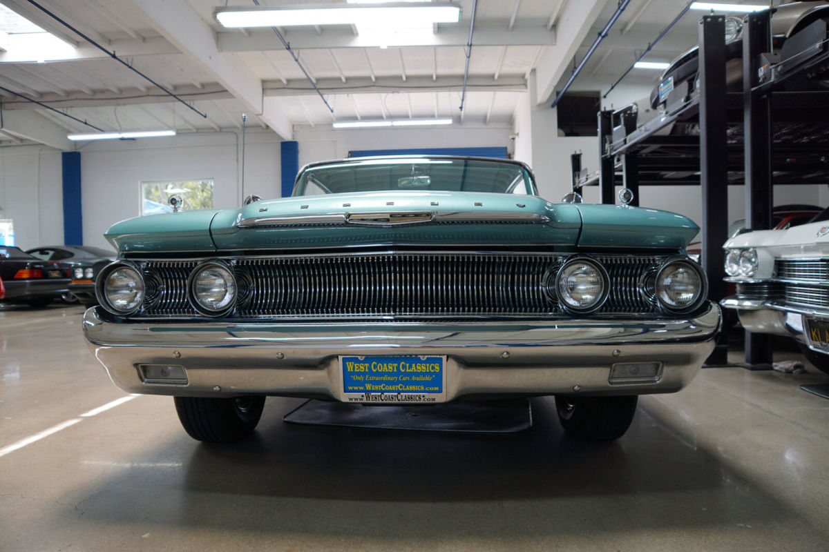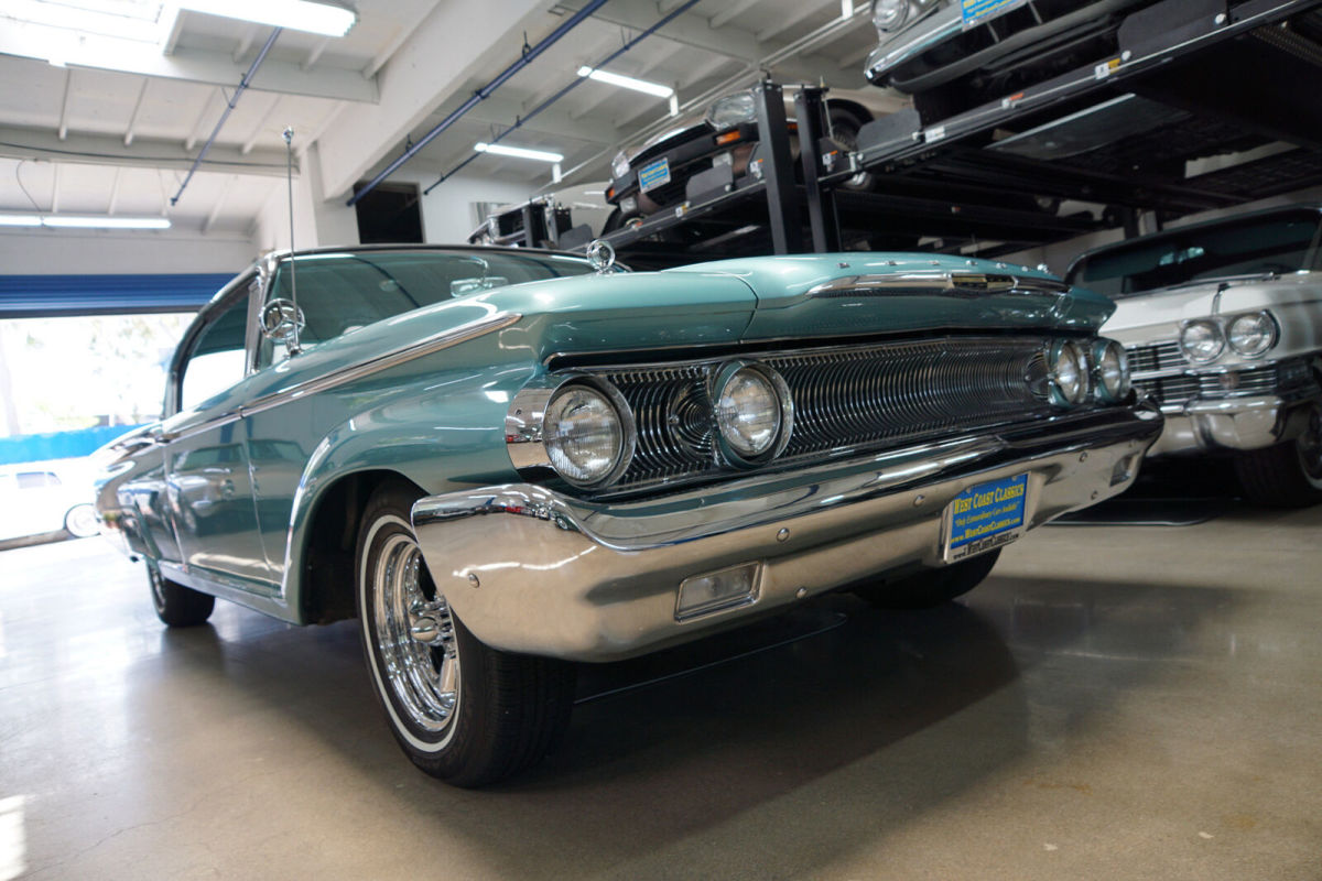 West Coast Classics presents an absolutely exceptional and highly desirable mostly all original example of this 1960 Mercury Monterey Fastback 2 door Hardtop with reportedly only 59K original miles in completely rust free condition with it's original factory upgraded 383/280HP V8 engine with factory options including: 383 C.I. V-8 280 H.P. 8.5:1 Mercomatic transmission 3 gear Borg-Warner Power steering Fender skirts Radio and Heater White wall tires Electric wind shield wipers Dual exhaust 'Astro-Supremes' rims and tires with original factory wheels in the trunk. DATA PLATE INFO: Body 63A: 2 door Monterey Hardtop Color D: Aztec Turquoise Met (Ocean Turquoise) Trim 27: Medium & Light Turquoise Crush Grain & Vinyl Interior Date 20K: October 20, 1959 TR 4: Automatic Dual Range Multidrive Axle 6: 2.91:1 Finished in it's very striking original factory 'Aztec Turquoise Metallic' color paint with it's original matching factory 'Medium & Light Turquoise Crush Grain & Vinyl' color seats, original matching 'Turquoise' carpet interior. The floor boards, trunk and all the typical rust-prone areas are completely solid and rust-free and the car has no signs of any accidents - obviously an always garaged and cherished car since new. The original spare wheel with it's jack is in the trunk. The original 383/280HP V8 engine is extremely strong and powerful and this particular car drives like it must have when new - must be driven to be fully appreciated. The transmission shifts smoothly through all the gears and the temperature always remains cool! This is a rare opportunity to own a great daily driving and never abused example of a superb example of this rust free 1960 Mercury Monterey Fastback 2 door Hardtop in very fine and mostly completely original condition throughout! |