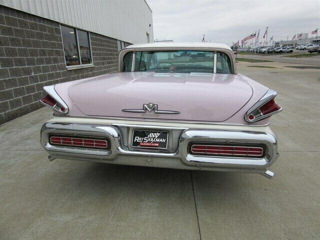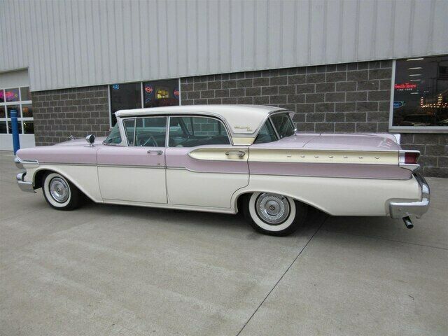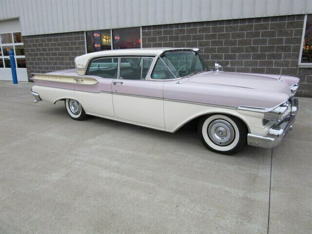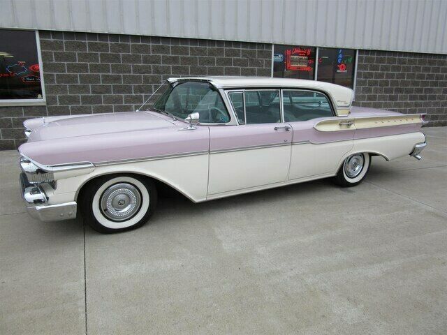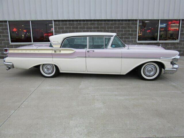 | This 1957 Mercury Turnpike Cruiser four door sedan is a true survivor! It is a 36k actual mile un-restored example with a completely original drive-train, interior and 90% original paint. It was sold new in Tahoka, Texas to a fellow that kept it in a building the the family owned in O'Donnell, Texas for several decades until his passing. His sister told the second owner that he rarely drove the car and then when he did only at night! He then left the car to his sister who kept it until 2009 when she sold it to the second owner who was a collector in Texas. The second owner kept the car until 2014 when it was sold to the third owner a gentleman from Indianapolis. The third owner passed away and left it to his daughter who we purchased it from in the fall of 2019. It is finished in the beautiful Classic White with Sunset Orchid accents. It has an original clear plastic covered black and white interior. It runs and drives nicely and shifts smoothly. This 1957 Turnpike Cruiser is a rare original example that has an interesting history to boot!! |