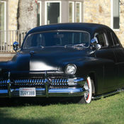 Purchased fromArizona after the former owner commissioned a $125k, 16-year build in variousshops in Minnesota where it was chopped 4", lowered front and rear, nosed,decked, and headlights frenched with bumpers molded to the body. Firewallwas replaced, and electrical components are hidden in the frame. CustomColorado billet wheels were machined to resemble 1959 Cadillac Sombrero hubcapswith trick rear fender skirts that remove with the touch of a button. The car's premierefeature is the custom tilt hood, smoothly welded into one unit that slides andtilts forward a full 90 degrees to expose the engine compartment. The frame andsuspension are original, with Fatman Fabrications front components for thedropped spindles. Other items include a Lecarra steering wheel(small cracks in the hub), Lokar shifter, cruise control,, A/C, Autoloc doorpoppers, and a Dakota digital dash. Vintage Air provides HVAC. When I bought thecar in 2012, we felt that the powertrain simply did not do justice to the restof the build and replaced it with a 330HP crate 347 Ford stroker motor and AODtransmission with stainless exhaust and Magnaflo mufflers to go with theexisting Ford 9" rear. We also improved the lighting and added theearly Corvette grill, replacing the almost invisible turn signals with LEDcombination turn signals/running lights. We also laser cut vent holes insome interior hood sections to increase cooling and replaced the smaller customgas tank with a larger 26 gallon unit. Added custom radiator with a 2800cfm electric fan and replaced various engine accessories with billetcomponents. A powered advance was added to the hood mechanism for ease ofoperation (pushes it forward before manual lifting aided by gas struts).ARP bolts were used whenever new ones were needed. Our actions addedanother $30k to the cost of the build, with all receipts for work done under myownership. Current issues are limited to minor cracking in thesteering wheel, and the cruise control, which works but seems to have beenwired backwards. That said, this car is ready to go anywhere! The car can be seen in our warehouse inAngola, Indiana. |