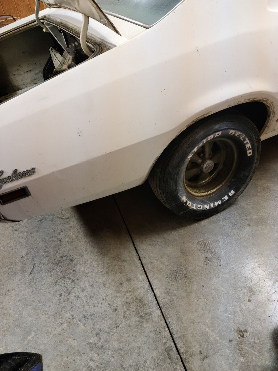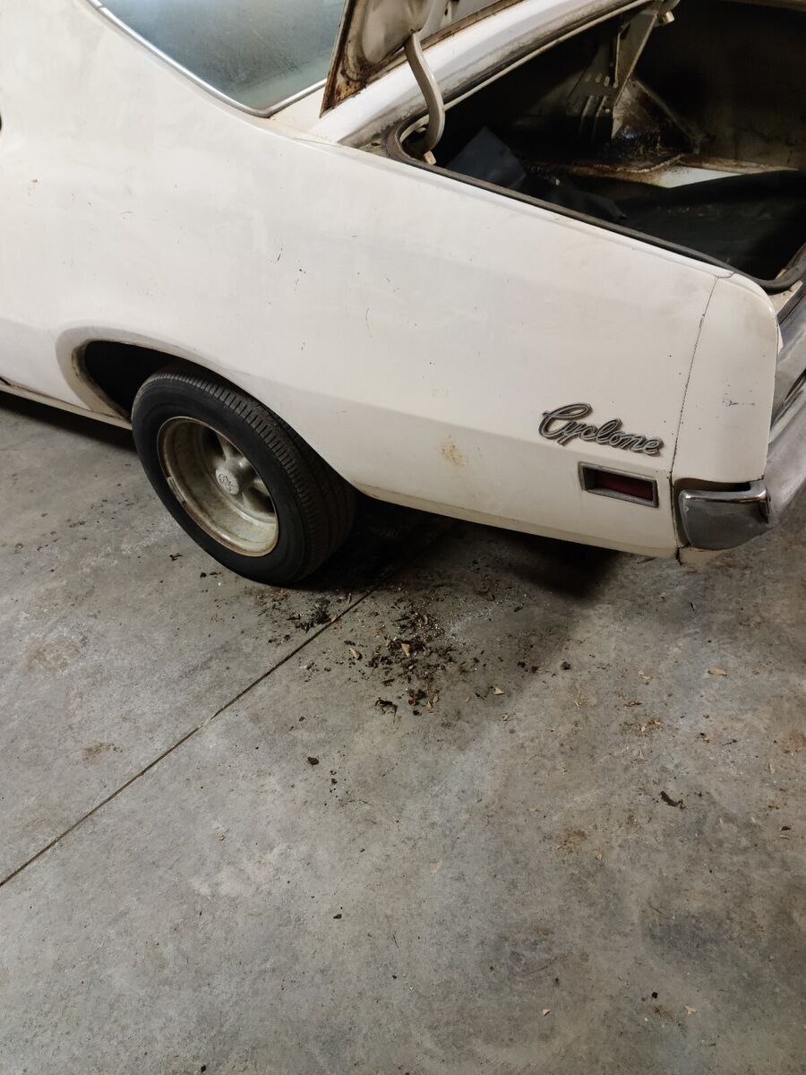 1970 Mercury Cyclone factory 4-speed, Big block Car, 90% complete. 'N' Code Car. Original white paint. California titled car. Base model, p/s, p/b, am radio Vehicle Details Big block w/headers. Original gunsight front grill with hood molding intact. Vinyl interior rough. Factory bucket seats. Hurst shifter. Console and dash pad need repair. Cragar wheels all around. Original bellhousing, clutch linkage |