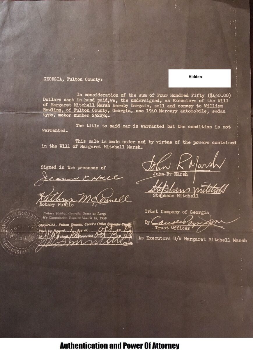 When two identical cars leave their factory, they are, indeed, identical. However, give it 10, 20, 30 or even 80 years and those cars may be anything but. History plays a huge role in collector car valuation, and thanks to idolization of celebrity, the name of the person who owned a particular car can generate tens of thousands of dollars in resale value. With that Said: Holy Grail For Gone With The Wind Collectors. For Your Consideration is Margaret Mitchell's 1940 Mercury Sedan. Ms Mitchell Was The Creator and Author of "Gone With The Wind" The Book Was The 2nd Most Popular Ever Sold. 2nd Only To The Bible and in Total Gross Sales to Date Adjusting For Inflation is The Highest Grossing Movie of all Time at $3.44 Billion. Ms Mitchell Lived in Atlanta and Created "Gone With The Wind" Over 84 Years Ago. This Wonderful Piece of Americana Still Resides In Georgia. Documents That Convey With The Sale Are The Power Attorney Signed By Her Husband John Marsh and Her Brother Steven Mitchell. Vehicle is Not Running. She's Covered in an Inch of Dust in The Barn Where She's Been For Many Many Years. This Antique Mercury Has Quite a Bit Of Provenance . Who Knows What Other Famous Occupants Were Passengers, ? It's Assumed That Ms Mitchell Purchased This 1940 Mercury Sedan With The Proceeds Of The Movie Royalties. "Gone With The Wind" Which Was Released December of 1939. Tragically Margaret Mitchell Passed Away August 16, 1949. 2 Months Later. Her Husband John Marsh and Her Brother Steven Mitchell Endorsed The POA To Sell This 1940 Mercury Sedan From Her Estate. Which is Included With This Sale. Fast Forward 74 Years. It Still Sits Tucked Away High and Dry in A Georgia Barn. For All The "Gone With The Wind" Fans and Collectors. It Doesn't Get Much Better Thank This ! Amazing Find To Any Collection Would Be Something Very Special. The Body and Chassis Are Solid. Currently Sports All The Original Paint and Interior Which Again is 83 Years Old. Also The Original Engine is Intact. She's All There ! Right Down To The Hubcaps. What's This Collectable Worth ? Just like at auction. It's worth what someone is willing to step up and offer. To a Gone With the Wind Collector. It's a Find ! I Would Imagine On The 100th Anniversary of "Gone with The Wind" This Would Accelerate in Value Exponentially. Taking Possession of Margaret Mitchell's Car Would Be Like Stumbling On The Holy Grail Of " Gone with The Wind" Collectables and Artifacts. For all interested parties I'm Taking Serious Offers From Individuals Who Seek Unique Celebrity Artifacts. I'll Give Her To a New Home When The Right Offer Comes Along. It Would Be Great To See it in a Museum. I Hope It Gets Recognized By The Right Individuals or Organization That Will Ultimately Relish It. Awesome Piece Of Americana With Provenance. Thanks For Looking and Message With Questions.*Note - I Do Not Participate in 3rd Party Transactions. No Caramel and No Paypal Please. Buyer and Seller will Deal Directly.Thank you.