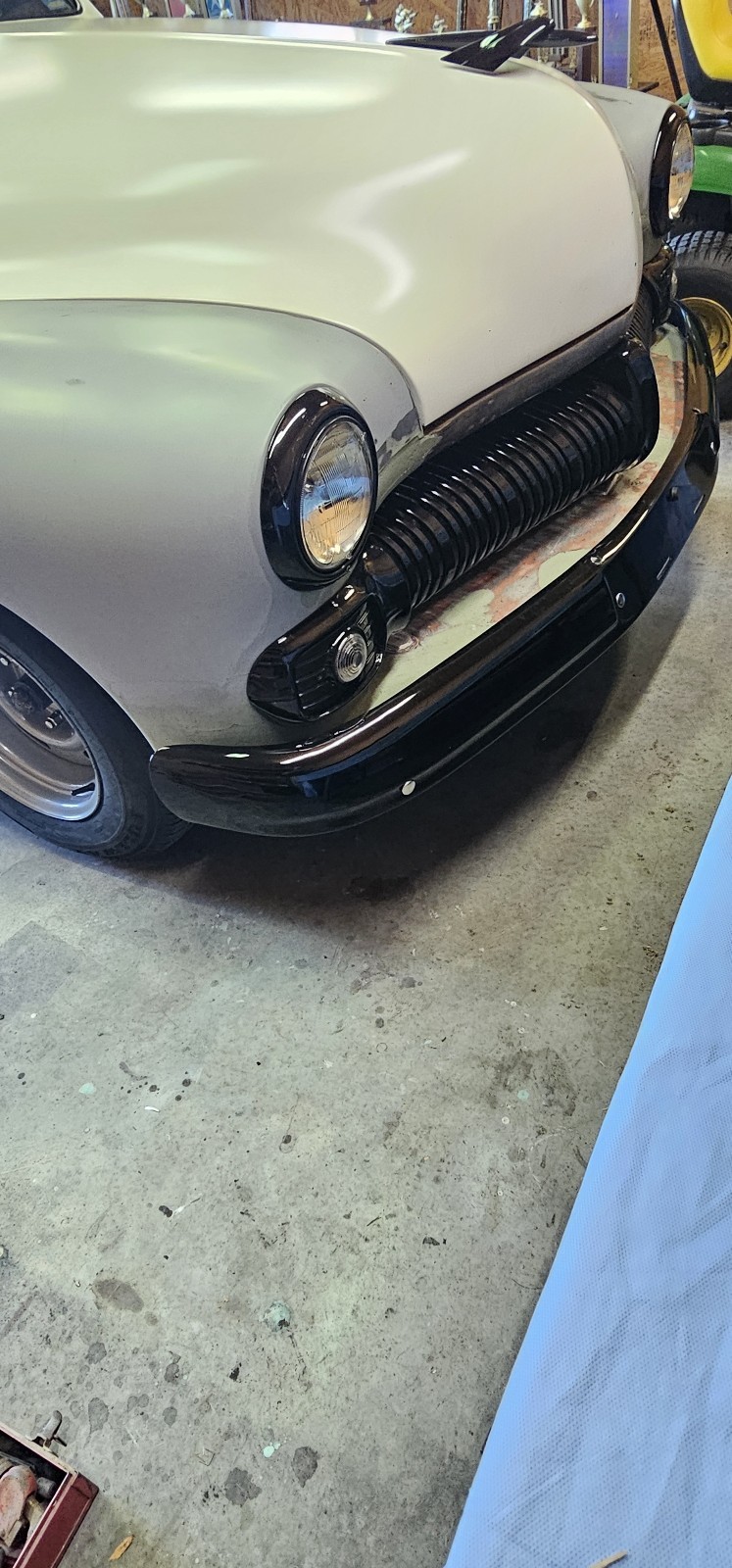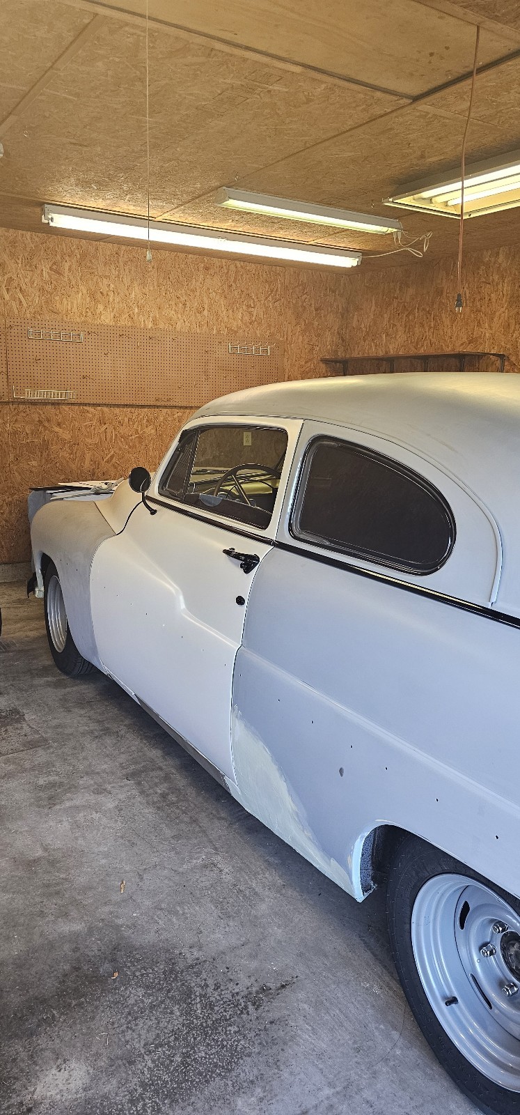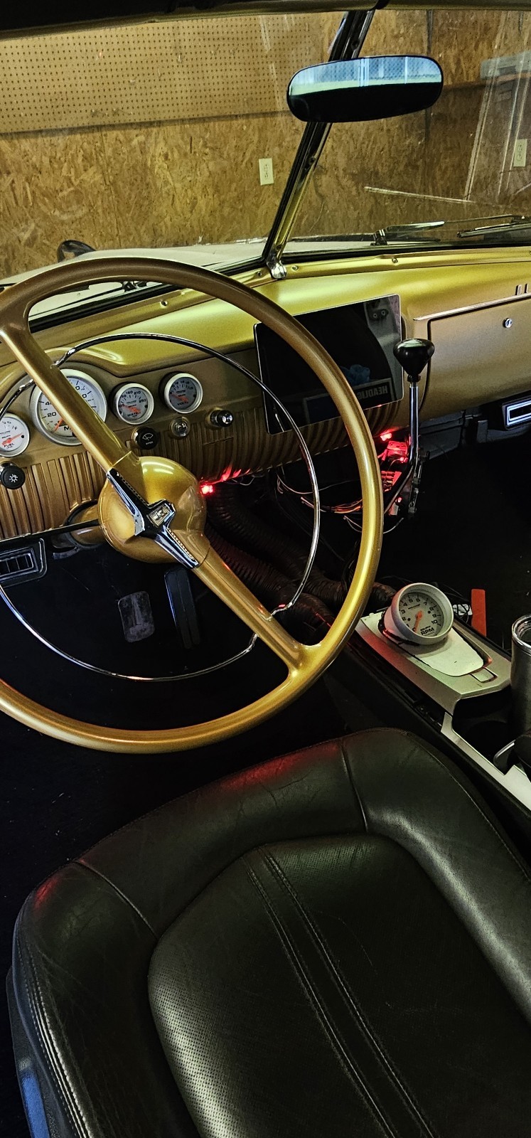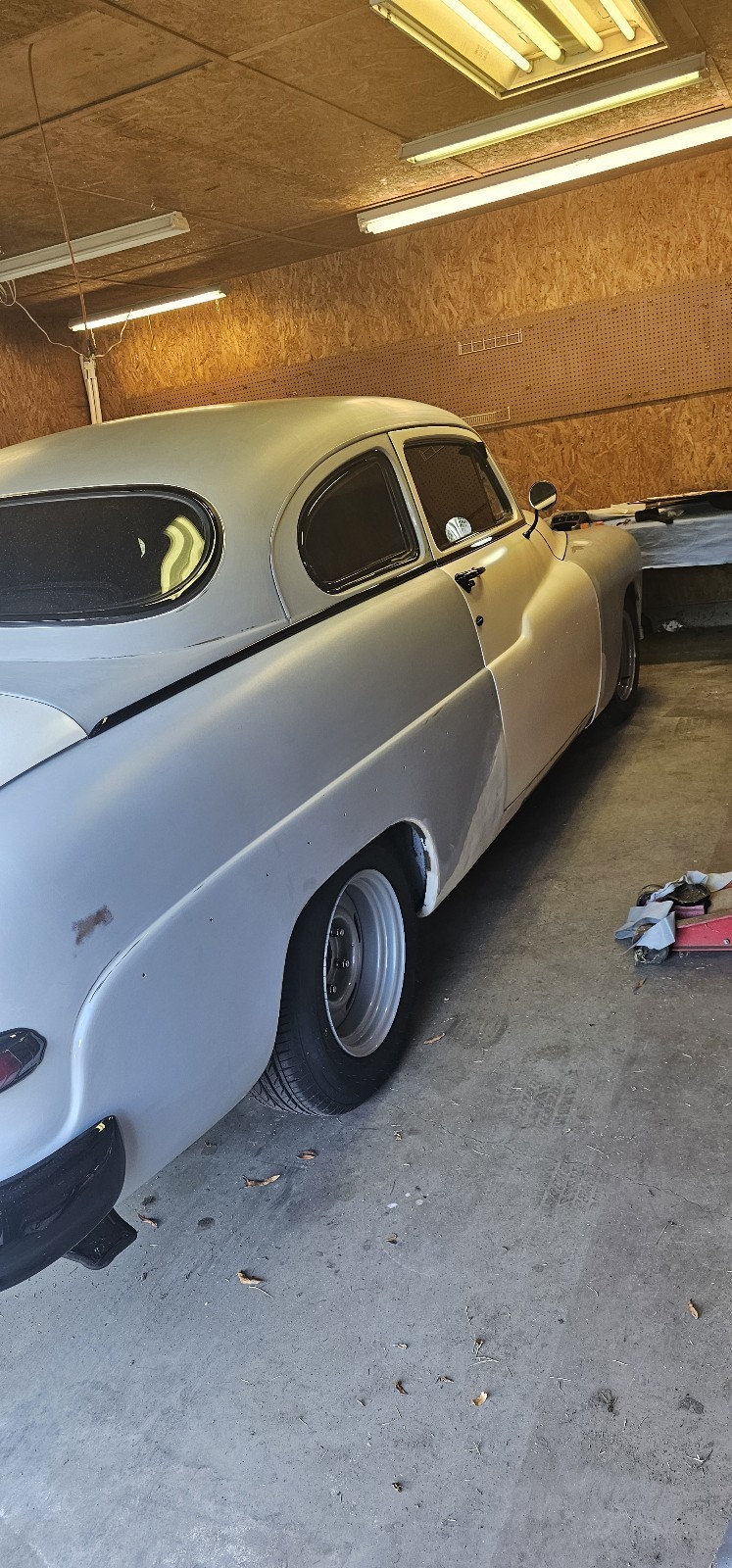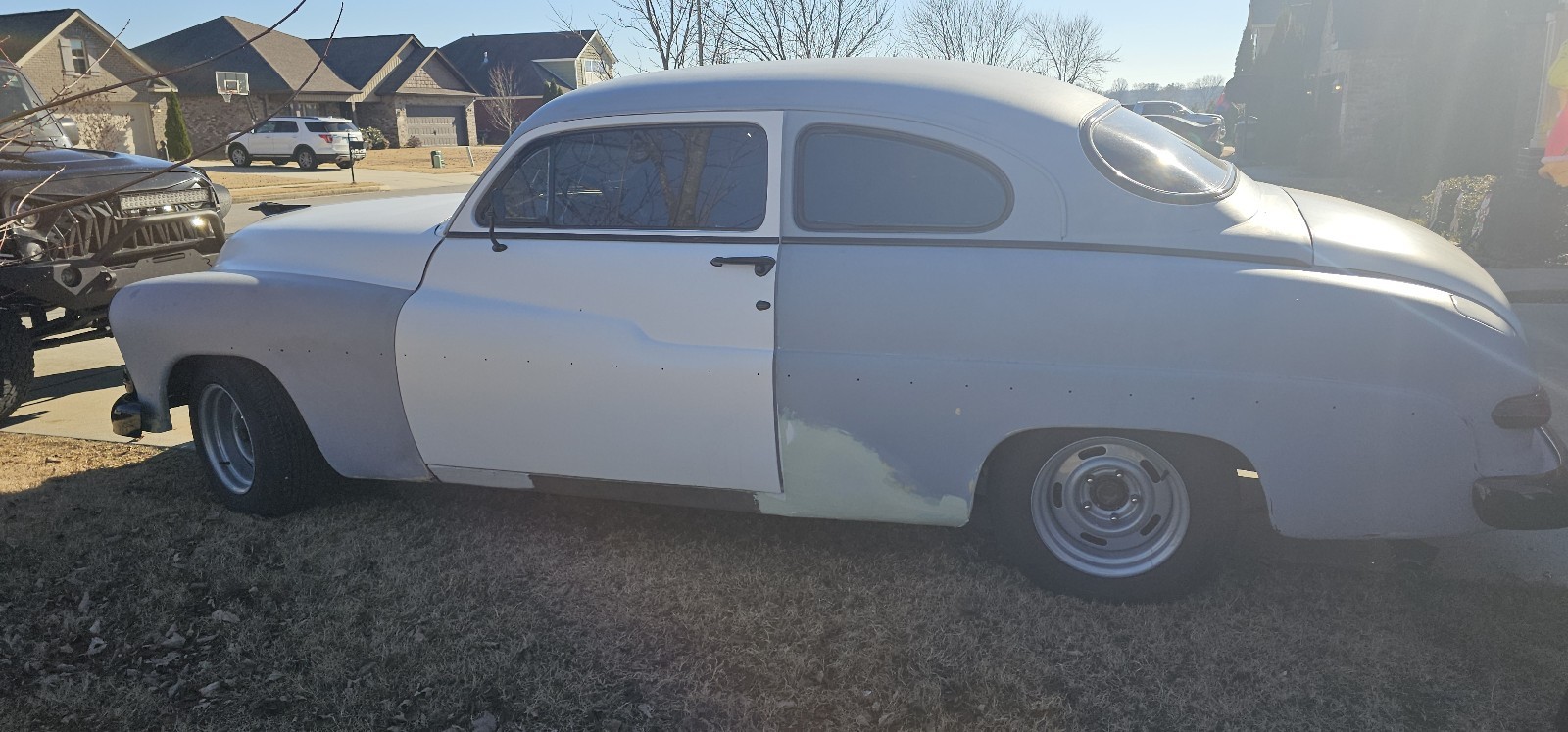 350 automatic, just rebuilt transmission, new power steering, new disc brakes all the way around, new tires, new thermostat switch, rewired, new starter, currently installing new suspensio, a/c heat, all black trim. Vehicle Details 1950 mercury coupe |