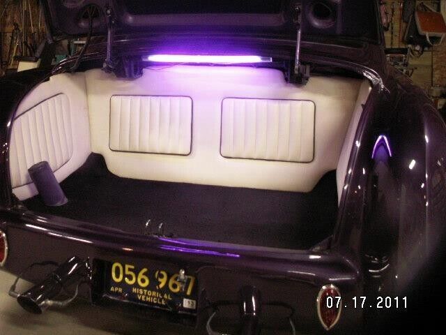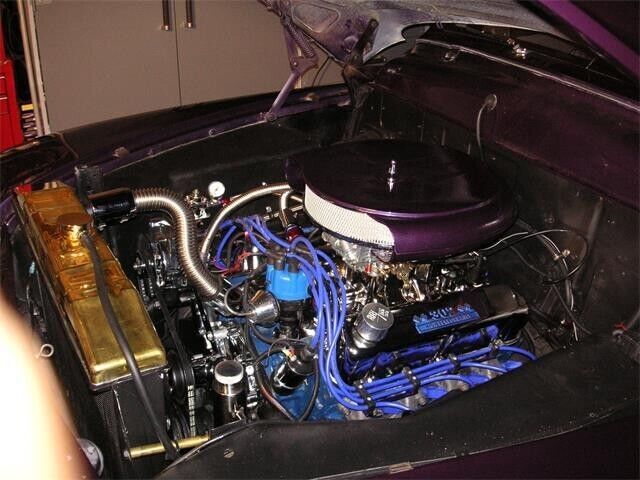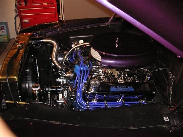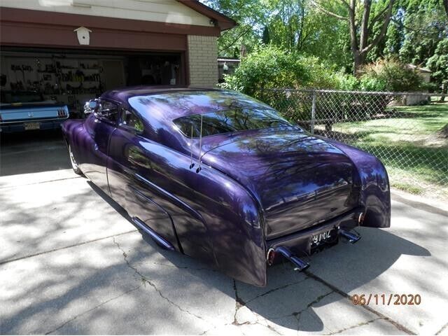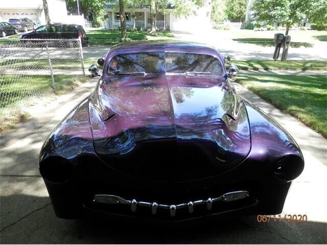 SPRING TUNE UP JUST COMPLETED, READY FOR SUMMER DRIVING! MECHANICALS: 1951 Mercury Custom 2 Door Leadsled, a completely detailed and chromed Ford 302 Hi-Performance V8 and a smooth shifting Ford C5 3 speed automatic transmission, fueled by a Holley 650 4 barrel carburetor, Cadillac air filter and electric fuel pump. Rear end is a 2:60 ratio, great for cruising, front end is Mercury. Coil springs in the front and leaf springs with steel blocks in the rear. Monroe heavy duty shocks in front and rear. It has power steering and manual brakes with an old school dual exhaust with quad sparked gasoline flame throwersignited by (4) exhaust mounted spark plugs and Model T coils. An electric fan with 2700 CFM power cools the 4 core copper radiator with polished brass top tank. Electrical system is a modern Ron Francis WireWorks 12 Volt harness and fuse boxwith mini-fuses. Car also has a "Priority Start System"installed on the battery so you will always have enough power to start the car, even if you've left the headlights or the neons on at a show. Electrical power is supplied by a 100 amp alternator with low speed 650 RPM cut-inand (for full electric power at idling speeds),a trunk mounted high CCA 12 volt battery. INTERIOR FEATURES: Cadillac power front leather bench seat with center divider and safety belts with rollups. Interior is in Ford parchment (white/beige) with purple piping and has a full headliner. Rear area has a custom tonneau cover which allows for storage and a clean 2 seater look. I have acomplete '66 T-Bird wrap around opera style back seat with all trim and rear deck upholstered and painted to match, separate and ready to install, included with car. The car is fully carpeted in black loop pile carpet with"show and go" front floor mats. The dashboard and door trim surfacesare air brushed in purple and black. Dash has purple/white laminated tear drop knobs on all features. Also, all gauges are included and functional (temperature/oil pressure/voltage/fuel/vacuum and combination speedometer/tachometer), in antique beige Autometer products. It also has a remote controlled 4 speaker stereo CD player mounted thru glove box, with CB unit right below it. The CB unit usesthe drive in movie speaker and has a coiled cord microphone and a detachable rear antenna (at the license plate)for use when traveling distances. The smooth shifting Ford C5 3 speed automatic transmission is controlled by an old schooltall floor shifter with matching laminated tear drop handle. The car also comes complete with an interior mounted Kidde fire extinguisher and first aid kit. When backing the car up, there is a manually activated switch which turns on a recorded message which plays thru an external speaker. It warnsanyone behind the car "Attention: This Vehicle is Backing Up" and repeats automatically until turned off. This is a nice safety feature for chopped Lead-sleds. The tilt steering wheel is from a '67 Impala and matches the interior, complete with Marilyn Monroe suicide knob. EXTERIOR FEATURES: Dark Grape Metallic base/clear paint is like glass and gorgeous on a very straight no rust steel body. The roof has been chopped 51/2" and offers great headroom inside. Body is dropped and channeledfor a sleek looking ride which is a definite head turner. Headlights are frenched in 5 1/2". They shine like two spotlights down the road at night. Thequad rear mounted antennas are also frenched with one antenna power operated from dash board. The door handles and trunk handle are shaved and operated by key fob with poppers for the doors and trunk has foot controlled popper. Tailight lensesare devil face "El Diablo" with blue dot eyes. Body is steel withrounding, decking and nosing in key areas. Frontgrilland turn signals arefrom a '53 Desoto. Hubcaps are Dodge Lancers. The rear wheels arecovered by removable original NOS '51 Mercury steel skirts painted to match withnew rubber seals, The car has true purpleNEON light tubes in the grill area, wheel wells, trunk and interior, controlled from dash.Also installed are old school Mercury insignia halogen workingspotlights with ivory handles by Unity (REAL,NOT DUMMIES). In thetrunk is a matching air brushed removable storage trunk which I use to hold my cleaning materials. High mounted brake lights are installed in the interior rear, visible thru tintedrearwindow. Full glass front windshield with variable speed wipers. Old school eyebrow air vent/scoops cutout in hood each side. All vehicle manuals and wiring schematics are included and several additional items go with the car which can be discussed when purchased. Also included with the car is a 12" x 17" photo album with historical data and over 100 photographs of the car since the first owner in it's custom form. The photographs also show the car when it was body-worked, chopped, primed and painted, throwing flames and more. Ihave a video on request so you can hear theSmithy mufflers rumble as well as the turbine like front cooling fan. Runs and looks great. Car was in the Auburn-Cord-Duesenberg Museum in 96-97 (Documented) before it received it's current update. Serious buyers can email any detailed questions in the "message seller"block and I will answer them or text directly 267-979-3948.One of the only Mercury vehicles you'll find thatis all Ford powered. One photograph showsthe Mercury winning it's classat the Ford World Headquarters show in Dearborn, Michigan, held every year, where only Ford powered vehicles are allowed. The car is designed and built, painted and upholstered very tastefully, classy yet old school.No mechanical issues or leaks. Electrical is new, runs great! |