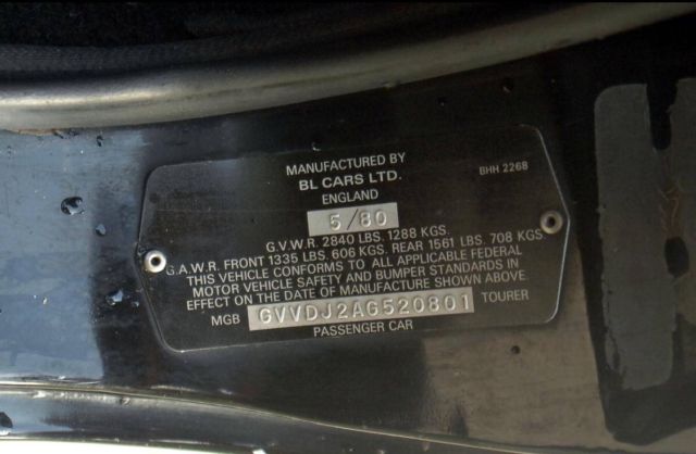 1980 MG MGB Limited Edition 1.8L inline 4-cylinder 62 horsepower engine with a 2 Barrel Downdraft Weber Carburetor, 4-speed strong manual transmission Disc brakes on the front and drum brakes on the rear Black Exterior with Black Interior Five spoke alloy wheels Luggage rack This is a fun car! Runs and drives great. It is all original and not restored, but has been garage kept and well maintained. There are a few scratches, but nothing that can't be easily repaired. A couple of dents on the trunk. I drive the car on Sundays and to car shows. Mileage now 152,300. This vehicle is being sold "As is". **Note that vehicle is currently located in Birmingham AL, area code 35215 when making preparations for shipping.