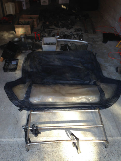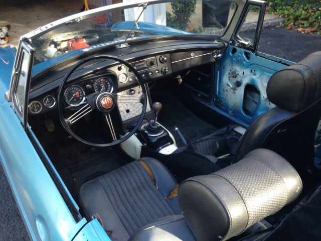 1967 MGB Convertible - 60k miles on the odometer Car was stored inside a garage, has not run for approximately 5 years but ran when parked. Motor is free and turns over (there is a wiring short but we tapped the started and the motor turned very smooth). There is a small amount of surface rust (see pics), a few small patched holes (See pics), car has an older body restoration, paint is ok. Original color is white. Solid floorboards and undercarriage. One small hole underneath passenger side has a patch on it riveted with metal. Otherwise car is very solid. Both seats will need to be reupholstered and interior carpet kits installed. Needs door cards and front grille. No pitting on any of the chrome bumpers (they are brand new) or the windshield and side windows. Dash has no cracks and all the original dash pieces are there (aka gauges, knobs, shifter etc). Has the original banjo steering wheel and horn button. Comes with a brand new hood still in the original box. Car will need a restoration or refreshing to get on the road again. Clean title in hand. Please see additional pictures of the car and partsClick Here With the car comes: - Original tool kit- Window glass (with extra glass) - Brand new hood in the box - Convertible top (no rips or tears) and all parts for the top - Spare tire/wire wheel - Interior carpet kit - many boxes of other parts for the car (seat belts, bumper over riders, other parts that need to go on the car, tons of nuts bolts, small and large parts) - Extra leaf springs, hubs, brake calipers, control arms, springs, many many extra parts too many to list(please see pictures) PLEASE NOTE: I also have 2 spare motors (one with spare transmission attached) and 2 spare axles that will also be part of the sale with the car if the buyer is interested. These are stored at a separate location where the buyer would have to arrange pick up if the buyer wants these extra parts. Car located in Summit, N.J.BUYER MUST ARRANGE ALL TRANSPORTATION. |