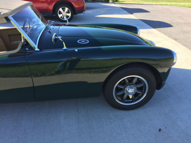 A NEW 1957 MG MGA 1500 2-Door Roadster Beautiful MGA restoration with Sebring front and rear styling. The 2 year frame off restoration was completed in September of 2015 The MGA sports a great performing MGB 1800 3 main engine with a 3 syncro 4 speed transmission and 391 differential gear for highway cruising. The goal of the restoration was to blend racing and nostalgic themes, while adding or improving safety, serviceability and drive-ability features. Thus keeping with the Sebring theme the radio is deleted; however the antenna is installed for future radio installation if desired. I like to describe this car as a new 1957 MGA roadster. It gets a lot of looks and comments. The MGA has won a couple of trophies at local car shows. The top is a custom build with a zippered rear window. You can drive with the top up during those blistering hot days and still get a top down fell without getting a sun burn. The towel in the photo covers the window to keep from scratching it. Every part was inspected and replaced or refurbished to new or better specifications where warrantied. The motor was rebuilt by previous owner. It was tested for leak down and compression. It maintains 65 lbs or greater oil pressure while cruising at 3000 rpm. The Frame was media blasted and coated with POR15. All other body parts where media blasted and under-coated with raptor tint-able urethane where required. Paint is a British racing green with a 9 out of 10 score. Some minor rock chips from driving. Safety upgrades include the following. Upgraded safety restraints from lap belt to 3 point retractable. Upgraded braking system includes a Single Line Brake Servo Booster for improve pedal feel and stopping power. Upgraded steel brake lines to Copper Nickel Brake lines. These will never rust. Upgraded Minilite Style Wheel - Knockoff - Anthracite - 15" x 5.5". Will not flex under load like wire wheels. Drive-ability and serviceability features include Upgraded ignition system to Protronix electronic ignition module and sport coil Upgraded wiring and ATO fuse panels. Eliminates the trouble prone Lucas 2 fuse panel. Upgraded charging system. Gm 63 amp alternator replaces old style generator and regulator box. Upgraded ground system from positive to negative ground. Upgraded starter system includes modern nippondenso 5840115 starter and ignition switch. Upgraded PCV system. Additional items include. New USB charger for cell phones and other electronics. Voltmeter module. Custom top with zippered rear window from England. Financing, Nationwide Shipping and Warranties available to qualified buyers. |