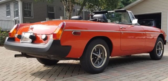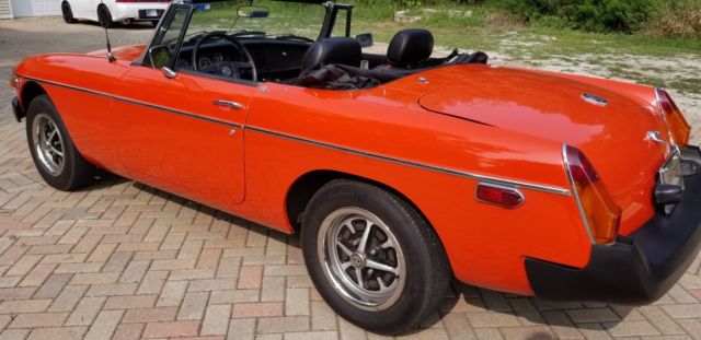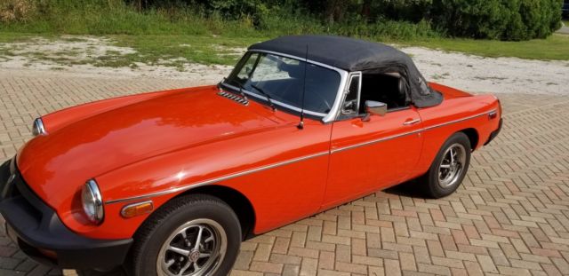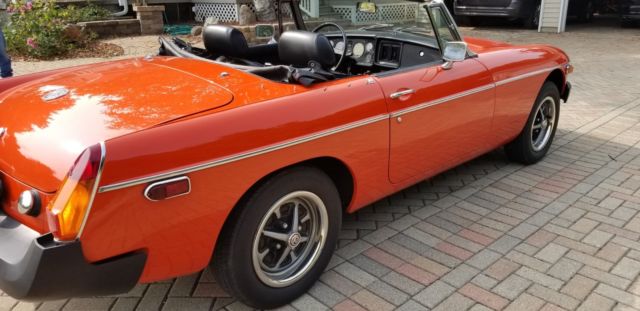 At NO RESERVE! This 79 MGB roadster Starts, runs, drives and stops great! It has been meticulously maintained. At 72,000 original and well documented miles, it still runs great with its original carbs, which is a huge testament to the diligent maintenance that has gone into this head turner. The bright orange paint keeps people staring all day long. With only a few very minor flaws, it is a very honest, yet very well cared for unrestored example that can be left to be for years to come with only easy upkeep and scheduled maintenance. There is no rust, leaks or squeaks on the MG andt he roadster retains much of its equipment that it came with in 1979, from the carbs, the radio, the dials, the wiper, lights, brakes, suspension and interior. All of which has held up very very well. It is a very impressive example. The tires and brakes are in great shape. There is an after market radio, but was hidden away under the glove box by which to retain the original radio in the dash. There is not much to pick apart on this MGB, the top is brand new, BUT the stitching on the passenger side did tear during install, and the back of the headrests have seemed to take a bit of a beating. The saving grace is from the driver seat, you'd never know! With the MG comes the front licence plate (I've had tons of interest in just that! By the way, dont ask, its not coming off the car!) As well as the most important detail to preserving the value of any classic or potential collectible which would be the service history since the car was originally imported to Florida when it was brand new. Naturally all this comes with the car in the hopes of continuing its lifelong story that could be passed down from one owner to the next while enjoying the charm and beauty of this little British roadster on nice warm sunny days. It is for sale locally, so I do have a number in mind. If you do as well feel free to reach out. Get it, and drive it with confidence. I can arrange shipping as well, very easy, dependable and affordable anywhere. I've included in the pictures as much detail as I can to include the folder containing the vast amount of lifelong history, Vin tags, flaws, and most other details most would find important for a numbers matching original MG.