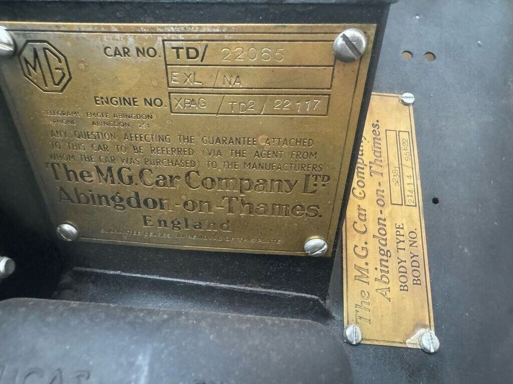 Description of 1953 MG TD Numbers Matching |