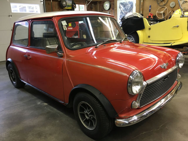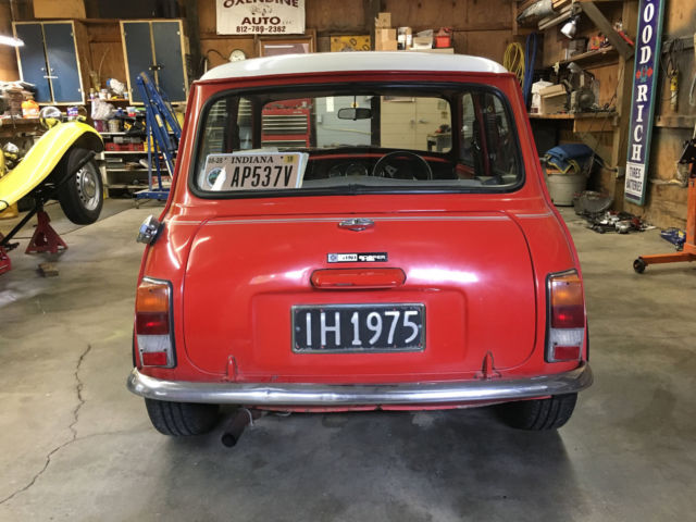 1977 Mini. Car was imported into Florida in 2003 from New Zealand. I purchased the car this year. Right hand drive, original interior. Car has been re painted in a couple different spots. Hood and others. Paint overall not real good. It looks better in the pictures. The best thing about the car is that besides a very tiny rust spot on the left side sill it is rust free. It's a very solid vehicle. The seats are worn and the webbing is sagging some. Not bad for being original. There is a well worn spot on the carpet under the drivers seat. I have new dash panels but haven't installed them. The engine smokes a bit at start up. I'm thinking it may need valve stem seals? $0.19 cents a piece and maybe and hour or two to change. There is a hint of smoke while accelerating but not bad. Again the seals may cure it. I've done the following since ownership: replaced the tires with a set of new old stock Yokahamas, replaced the carb float and adjusted, new plugs, points, condenser, adjusted the valves, new valve cover gasket, replaced the shift rod seal, changed oil and filter and a few other things. I've added a steering column drop for a more comfortable driving position and added seat extenders to the drivers chair. I have some early receipts from New Zeland showing the engine being rebuilt. I'm not sure of how many miles have passed but it can't be many. The odometer show 43,333 Kilometers which translated into 26,926 miles? not sure how accurate this is. If I can think of anything else I'll post it. I'm changing gears and have my eye on another vehicle and need the room. Please don't bid unless you are serious. I have set the reserve below what I have invested into the car in order to move it. I have a perfect feed back record and aim to keep it that way. Please email any questions or call me at 812-309-8251 with any questions.
