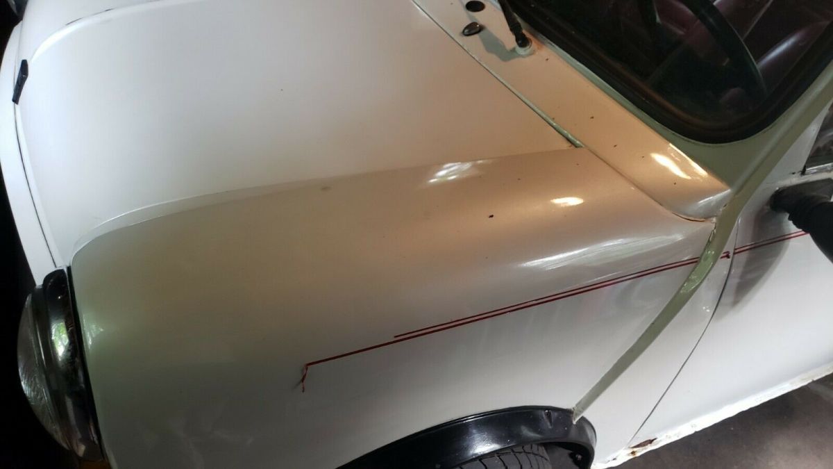 When I was on the road with the top down, I was the center of attention.When I parked it, I’d return to find notes on the windshield saying how much they liked my car! I moving and no longer have a garage, so my baby has to go. I have had this car for a while, but it’s been sitting in my garage for the last 10 years. I had a close friend who was a mechanic and took care of my mini. He passed away. After he drove it last, it has sat waiting for me to decide what to do. Now I am selling my house and have no choice. So here’s your chance to get this very very rare and unusual 1977 Austin Mini Special - Convertible. I have title in-hand. CONDITION Car is in garage and could only be minimally cleaned. Dark spots are dirt. Plastic windows are clear. When last driven: · Manual 4 speed transmission shifted crisply · Engine ran strong · Clutch was good · Steering was sharp · All electrical/electronics worked, including the aftermarket stereo deck · Starter was rebuilt · Ignition bits replaced Currently, having been stored in a dry (but not heated) garage for 10 years: · Right side tires hold air, left tires are flat. · Red leather interior in great condition.Leather is still supple and looks good. · I replaced the top when I purchased the car. I paid a good amount to ensure it was well made and sturdy. I can’t wash the top in the garage, but it cleans up to bright white. · Pearl white paint is very shiny, but has started cracking in some places. · Only known rust spot is shown in picture #7. Underbody is pristine. · Battery is dead. SALE INCLUDES · Full size spare & jack · Replacement wheel arch trim (4) · Ignition coil · Other bits Whether you spend just enough to get it running or do a full restore, you will be assured of having an incredibly fun and unique car. Wherever you go, no chance anyone else will have one! Sold as-is where-is. Shipping arrangements and expense are responsibility of buyer. |