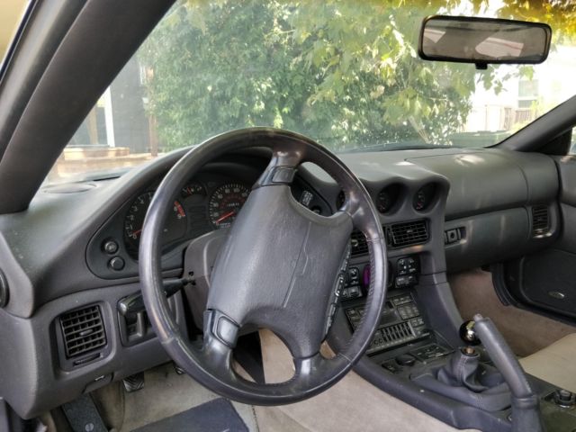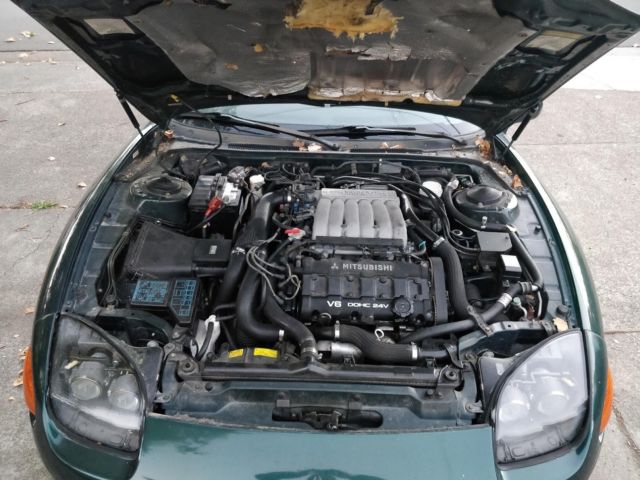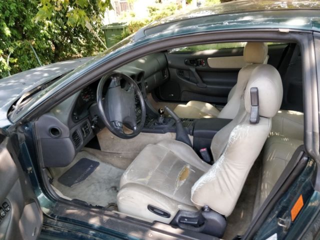 Rare second-gen twin turbo 3000gt vr-4 for sale. Currently starts and runs, but is smoking heavily after initial warm up and will need work. It should not be driven for any extended time so should be towed. Has very rare Japanese "MR" lower 6-speed gearing and rear pinion, as well as aluminum drive shaft, new aluminum flywheel and clutch with less than 1000 mi on them (original parts also included if desired), and new timing belt, tensioner and water pump. This 94' model is equipped with every feature ever available on the vr-4, including active aero and exhaust, AWD, 4-wheel steering, 6-disc changer option and much more. Vehicle has not been abused or raced, and has not been driven in ~ 2 years, only started for occasional maintenance. It would make an excellent project car for someone who is willing to devote a little time to it. The good: -New aluminum driveshaft and flywheel, polyurethaneupper motor mount -Newly replaced clutch timing belt. tensioner, and water pump -Lower Japanese gearing6-speed transmission and rear pinion/drive ratio -Most features tested and working at time of write-up, including all-wheel steering, active aero, active exhaust, active suspension, almost all interior functions -Starts and runs, un-abused -Clean title, no accidents, no heavy rusting/corrosion The Bad: -Smokes heavily after initial warm-up, runs/sounds "unhealthy" but without heavy knocking. Work to correct unknown. -Paint in heavily faded condition, esp. hood and rear spoiler -Drivers seat tearing, bubbling in drivers door, and other minor/various interior cosmetic issues -Timing cover not installed but included; fender liners in front and headlight backings missing and not included -Left-front fender is non-original to vehicle, and currently rubs on drivers door. Original fender can be included however will require dent work and paint to repair. Various other exterior imperfections and dents -6-disk changer does not retain disk cassette Buyer responsible for pickup and delivery fees. Sold as is. Vehicle will be sold with "Planned non-operation" status registration due to issues passing smog, and only current year registration will be due. Feel free to ask any additional questions before purchase. |