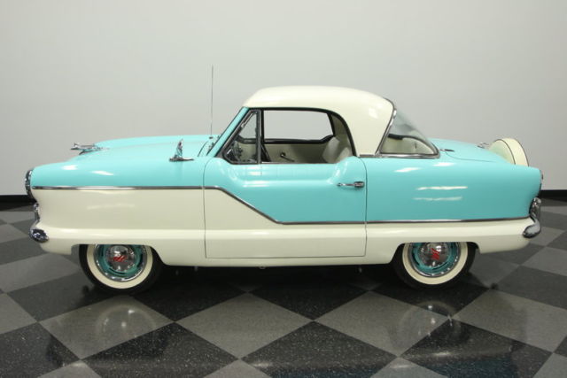 Not only is this 1962 Nash Metropolitan is the last and rarest of the breed, but it's also a movie car that has been kept in fantastic condition inside and out. So for those who want an affordable classic with a story to tell, and this little international star is a great way to turn heads.The movie Hairspray (1988) had to show life in the early '60s, and this Metropolitan was chosen to help remind people of that time. After all, it might be European sized, but the coupe carries plenty of American design flair with its full chrome front end and continental kit in the rear. That's what makes these cars so cool today. A series IV model like this one is especially desirable because it's the only one with exterior access to the trunk. Plus, the later cars had bright side trim that's a great dividing line for the two-tone finish. The Frost White and Turquoise looks like the perfect color combo for this period. 1962 was the final production year for these cars, and it was a short run that made for low production numbers. This kind of history has been appreciated on a car so well preserved. There's even thoughtful care on the wheels with chrome hubcaps and painted steelies with whitewall tires that match so nicely with the body.The car is tiny, no question about it, but you'll find that it's easy to get comfortable inside. The split bench seat has been upholstered in original style houndstooth fabric with vinyl accents, and legroom is good, even for six-footers. These coupes do also have a back seat. It's not exactly roomy for passengers, but its similar black/white appearance makes for a well-presented storage shelf and interior access to the trunk. The driver gets one large main gauge pod dominated by a speedometer, but since the car was sourced from Britain, it happens to be a Smiths readout. So just imagine the looks on people's faces as you compare this Met to Jaguars and Aston Martins.Under the hood is the correct 1.5-liter motor, and it looks fantastic with its block in classic green. These were sourced from Austin in England who are the people that really know about how to get the most out of a small powerplant. In fact, this B-Series motor is related to the MGA 1500. This was a popular motor in Europe, and parts are still easy to find and relatively inexpensive. Like a good frugal European, the fuel mileage generally hovers in the 30+ MPG range, making this a fantastic car if you're on a budget but still like to get out and drive. The three-speed manual transmission has light action, and with smart gearing, it cruises at 60 MPH without complaint, and without being buzzy on the highway. With a tight turning radius and nippy handling, this American Nash feels like a proper European import.This little movie star is no diva, and it comes with the maintenance records and owner's manual to prove it. Here's a great classic with a unique story and an affordable price. This kind of combo is likely to go quickly. Call today!!!