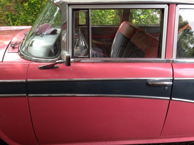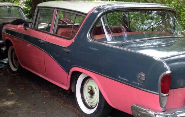 GrayandPink Add to this the This Vehicle isin its Original Colors and with its Original Drive-Train With some TLC Approximately 300 of these beauties were made SELLERS Description Very Straight and Solid, this TRI-Colored Salmon (Pepto-Bismol Pink), Gray and White Hudson Rambler has been undergoingsome restoration. Its paint has been buffed out to its original Fifties paint scheme and original bright work was added where necessary.(Havelots of extra Chrome pieces to include with sale)Inside, the original salmon and gray cloth and vinyl upholstery has been retained with gray fitted carpeting. The door trims and headliner need restoration but are in passable condition. The original Hudson dash waspartially restoredand treated to somechrome trim. Mechanically, this Rambler was overhauled and remains in a safe driveble condition.I will be including a spare transmission and Windshield with the car.I am in the midst of replacing the water pump as it leaks. Under the hood the reliable six-cylinder engine still bears its original factory finish, while the undercarriage remains essentially untouched cosmetically. Added features on this rarer Hudson version of AMC’s popular Rambler include a clock, radio, heater/defroster, dual mirrors and wide whitewall tires with full wheel discs. Although the whitewall are on the pictures, they are actually replaced currently by blackwalls THIS VEHICLE IS IDEAL FOR THE HOME TINKERER AS ALL THIS CAR NEEDS IS MINOR COSMETIC AND BASIC GARAGE SERVICING TO MAKE IT A SHOW A WINNER SOLD AS-IS, NO RETURNS