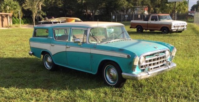 This 1957 Rambler has it all, she's got the nice Rat Rod look combined with a surfers' edge which gives her just some extra Zing... She still wears her factory paint Turqoise with pride and has a rebuilt engine, a new radiator, airconditioning, new brakes and beautiful new white wall tires.The pristine white/brown interior just adds more to her charm. Only thing that isn't replaced are her cracked side windows. This Rambler is a very solid car and yes, the surfboard IS included. If you want additional pictures or you have specific questions you can always contact me during business hours (8 AM to 6 PM) on my cell phone (352)201-4778. Shipping is possible just let your shipper contact us to work it out.Overseas shipping is also an option. |