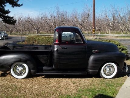 | 1951 CHEVY PICK UP 5 WINDOWS RAT ROD. THE 51 HAS A 350 MOTOR AND A 350 TRANS AUTO. HE REAR END IS A 9 '' FORD WITH DRUM BRAKES. THE FRONT IS ORIGINAL SUPENSIONS WITH DISC BRAKES AND POWER STEERING AND BRAKES. NEW BUMPERS . IRING KIT. IRES WITH PORTAWALLS WHITE WALLS . EW RED INTRERIOR AND A 58-60 STEERING WHEEL. THE BODY HAS NO BODY WORK DONE. HERE IS RUST IN THE DRIVER CAB CORNER. TS HAS A SATIN BLACK WITH RED PIN STRIPING AND THE ROOF WAS PAINTED WITH SILVER FLAKE WITH HOT APPLE RED CANDY AND CLEAR. DEPOSIT OF US $1000 WITHIN 48 HOURS OF AUCTION CLOSE. FULL PAYMENT REQUIED WITHIN 7 DAYS OF AUCTION |