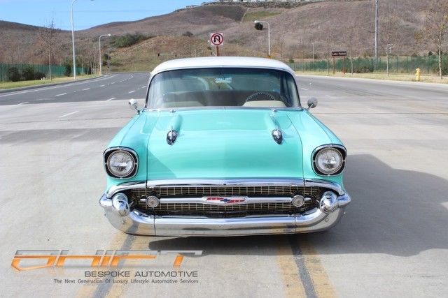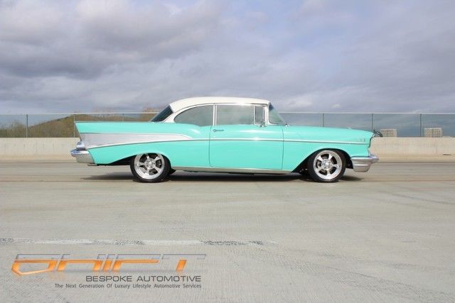1957 Chevrolet Belair * all cars advertised are available Shift Bespoke Automotive is proud to offer this 1957 Chevrolet Belair! Laser straight High Shine Paint turquoise over original super supple SaddleInterior. For yourconvenience we took a complete library of photos in natural sunlight - not a faux studio or edited images.Please feel free to contact us at 949-891-Cars (2277) FOR QUESTIONS, SCHEDULE TEST DRIVES ORINSPECTIONS. Inspections are welcome and encouraged. Keep in mind we ship cars worldwide. What you have here in front of you is one of the most iconic cars ever manufactured.Attention to detail here... the current owner purchasedthis car from race car driver and hot rod collectorRocky Nash. PAINT andBODY Light Blue Green w/ Two-tone, White Top Paint Tinted Glass New Chrome ENGINE & TRANSMISSION Balanced & Blueprinted 383 Cubic Inch Engine FAST EZ-EFI Fuel System 700R Overdrive Transmission Custom Radiator & Shroud Billet Air Cleaner Power Steering Bear Power Disc Brakes HPC Coated Headers w/ Flowmaster Exhaust Vintage Air Conditioning INTERIOR Light Tan Leather with Light Tan Suede, Custom Console by Armando’s Upholstery, Hemet, CA Lokar Shifter Billet Dash Insert Ididit Polished Steering Column Budnik Polished Steering Wheel Color Coded Seat Belts Front and Rear CHASSIS Driver Quality w/ Sway Bars Polished Fuel Tank New Parts Where Needed WHEELS andTIRES Billet Specialties Polished 17-inch Front w/ 245x40 ZR – 18-inch Rears w/ 255x45 ZR For yourconvenience we took a small library of photos, these photo are taken in natural sunlight. Wedon'thave a mock studio or photoshop/edit any of our photos. Inquiries:When sending an inquiry, please be aware that email is slow,unreliable, and time consuming and can get filtered by spam or blocked by servers. I understand sometimes email is the only option, so if you do send an inquiry please make sure to include your phone number. Im an enthusiast just like you so I always want to talk shop. Most importantly; chances Im out looking at cars, driving cars, or talking cars with someone - not glued to my desk. We offer airport (SNA) pick-up if you're flying in to pick-up this beautiful vehicle or we can help facilitate shipping directly to your front door. |