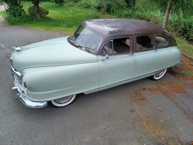 Vehicle Details A very nice unmolested 1950 Nash Statesman Custom. It seems to have spent its life prior to my purchase in the Boise, Idaho area and must have been kept very dry. It has very little rust, light surface rust at most. I removed the passenger side door upholstery and found nothing but a trace of dust inside the door. The paint has light wear, patina, some scratches and very small amount of long-ago retouching. The upholstery is original with a wear area at the driver's seat. The rear portion of the carpet is original and in poor condition and the front carpeting was replaced at some point.Engine--professionally rebuilt including new pistons, rings, timing chain, timing gears, all bearings, freeze plugs, and cylinder head studs. New intake and exhaust valves, valve guides, and of course gaskets.Transmission--all new seals. New overdrive solenoid. Overdrive governor functions correctly.Brakes--drums turned and there remains additional "meat" for these hard-to-find drums. Parking brake repaired with new components.Body--very good original paint with minor scratches, touch-ups, and I'd have to look hard to find dings. Classic post-WWII institutional color scheme. The windows are all intact. The driver's side mirror has a new mirror but it is a bit loose.Interior--original upholstery, not redone at this point. Has the Uniscope and all gauges and lights function. Has the clock option. The radio is a "radio head" which in my opinion would be best connected to a more modern AM radio, I'm not sure an original under dash unit could be located. For those unfamiliar with a "radio head" it is the tuner and volume knobs only with cables to connect to what at the time would have been a substantially larger receiver mounted under the dash in the passenger foot well area.Fuel--The dual fuel/vacuum pump is mounted but the fuel side is currently bypassed and an electric pump is installed near the tank. The tank was de-rusted and is in good condition. A new float is installed and sends a reasonably accurate signal to the gauge. New fuel line.Electrical--Generator and starter rebuilt. Most connections cleaned throughout. Front and rear turn signals de-rusted and confirmed. Misc.--Many other new or refurbished components. Example: I got tired of dealing with the mechanical fuel pumps and will include additional rebuilt ones and any other components I find. I will include a new windshield gasket as there is evidence of a leak.