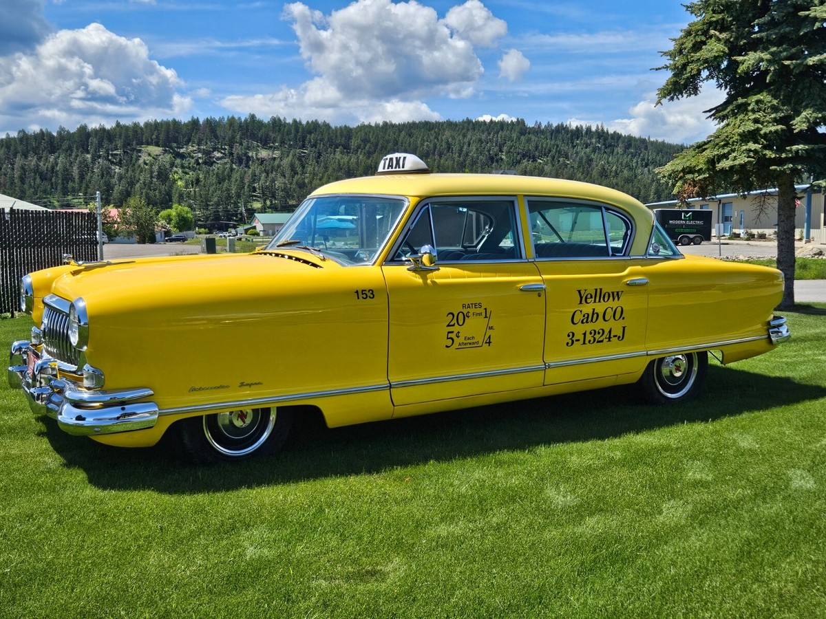 1953 NASH Taxi Cab.Step back in time with the 1953 Nash Ambassador Taxi, a quintessential piece of automotive history. Much rarer than the commonly found Checker. Painted in a striking yellow, this collector's car boasts a classic tan interior, evoking the sophistication of a bygone era. With a sedan body type, it comfortably seats six, making it an ideal choice for both spirited drives and leisurely cruises. The Ambassador model, known for its timeless design, rolls on a clear title, ensuring its authenticity and peace of mind for its new owner. With a modest mileage of 13,890 (showing), this piece of Nash legacy is a treasure for both enthusiasts and collectors alike, ready to add a touch of nostalgia to any collection. Original motor and automatic transmission. Comes with taxi meter and drivers cap. Chrome is excellent with optional "stacked" bumpers and bumperettes front and rear. "Taxi" light is remote controlled and magnet mounted. No holes in the roof. It is removable. The Nash Ambassador was well know as a durable automobile. If you watch any old B & W TV you will commonly see this car as a taxi or police car. Considering the exceptional condition of this car I doubt it was ever used as a taxi. However, it is a faithful tribute to this American icon. It needs a few things done to bring it back to it's original glory. The brakes work great but need adjusting, There is a deep chip on the passenger fender. The hood is missing a spring. UPDATE: I just now realized this car has the optional twin bed. A very rare and cool option. See the picture! This could be a great addition to any automotive museum, nostalgic limo fleet or possibly the greatest UBER spoof ever! Please call before BIN or offer. BIN or Offers w/o call will be declined. There is more to say so do not hesitate to call. Located in Kalispell, MT 59901. Bob 727-642-8237