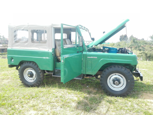 Meet "Ivy" our pretty green 1979 Nissan Patrol LG-60 medium wheelbase truck. Please note truck is in the country of Colombia and is getting a light overhaul before export which will occur in 3 weeks. We the seller are Volcan 4x4, LC which is a US citizen owned Florida registered independent car dealer and bonded $25,000. We sell our trucks direct out of Colombia where we have a team that overhauls them for 30 days minimum and then we follow up with a 1 week minimum review by our Tampa, lorida mechanic. We have sold and imported now 15 classic trucks including 3 Nissan Patrols. Why are imported high quality Nissan Patrols capturing the interest of vintage 4x4 buyers in the USA? Frankly they are cool, ifferent and extremely well made 4x4s with a legendary history of being fierce competitors to the now popular imported Toyota Land Cruiser FJ43 medium wheelbase. This Patrol has vents in the dash, win stick 4wd, rank start and the super smooth and powerful 4.0 liter P series Nissan straight six. Check out the 3 windshield wipers and handsome styling. You will not be commuting in this truck as it is a 50 mph cruiser due to gearing but truck has 5 brand 7.50 x 16 General tires on original Nissan wheels. This truck has electronic ignition and adapted power brake booster. Truck has a 3 speed manual and manual steering. You can seat 6 or 7 friends in this truck. This is a collectible truck meant for short trips. These are pre overhaul photos and the truck gets minor paint touch up and a thorough mechanical review including new brakes, okico shocks and exhaust among other things. Truck is believed to be a 2 to 3 owner truck showing 94000 km on the odometer. 94000 km would be 58000 miles. 194000 km would be about 120,000 miles. Regardless this truck shows to be just under the condition of a frame off truck. We just checked the compression for 6 cylinders and they are: 150, 50, 45, 45, 45, 45. Truck gets brand new interior with custom floor mats we do for all our trucks. We are asking for a $10,000 refundable deposit on this truck. We guaranteed clear Florida title. Most of our trucks sell under contract or deposit inbound from Colombia. This is a stunning Patrol in a rare color. |