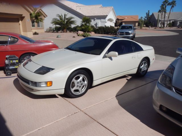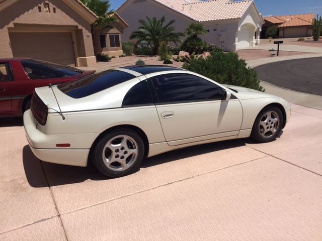 I bought this 300ZX Non-Turbo approximately a year and a half ago and am the second owner. The original owner(s) (husband and wife) took great care of the car. It has a little over 137K miles and only 2K of that has been put on since I bought the car. 3 months after I bought the car I was transferred to Seattle but kept our house here in Phoenix and the car was stored in the garage. We returned to Phoenix in June and I just re-registered the car a couple of weeks ago. It passed emissions with flying colors and the tech who tested it said this is the cleanest 90 300ZX he's ever seen. When I bought the car I called the dealership in Peoria, AZ that had done most of the service for the PO and found the timing belt was changed approximately 7K miles ago. The car is bone stock except that after I bought it I had an alarm, electric door locks, and a push button start (complete with computer module and key fob activation) installed. The stereo unit is aftermarket but was installed by the PO and is connected to the Bose system. It is a nice install - no hack job. I put in custom Lloyd floor mats, and a custom (made for the 300ZX) window shade as well as a dash cover. I also installed new mufflers. Everything works, the leather interior is in fabulous shape, no cracks in the dash, the T-tops don't leak. The 5 speed works great as does the cruise control and A/C. There is absolutely nothing wrong with this car. I would not hesitate to get in it tomorrow and drive to New York. The only reason I am selling is that I have my eye on another car and need to make room. I am a car nut so I tend to change cars often and it's time to let someone else enjoy this one. Note: Description says sunroof but the car has T-tops. |