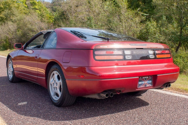 1993 Nissan 300ZX 2+2• Auburn-Cord-Duesenberg Poster Artist John Souder's personal car• The car is exceptionally clean in and out!• Fastidiously maintained and exercised; car was Souder's daily driver• Cherry Red Pearl exterior (code AH3) and Charcoal leather interior (code G)• One of only 1,767 300ZXs made with this exterior/interior combination in 1993 and one of 11,559 Nissan 300ZXs, all models, made in 1993• 3.0L 24-valve DOHC V-6 engine (code VG30DE) with (N-VCT) and sequential fuel injection• Four-speed automatic transmission (code RE4R01A) and 4.08 gearing• Air-conditioning, power rack-and-pinion steering, power four-wheel and ventilated disc brakes with anti-lock, driver's side air bag, cruise control, power windows, power locks, power mirrors and power front seats• T-tops, remote fuel filler door and hatch releases and rear defroster and rear wiper/washer• Roadmaster subwoofer in cargo bay• Very tidy undercarriageEven though Nissan heavily advertised its "4-door Sports Car, "? it still made plenty of its two-door sports car in the 1990s, the Nissan 300ZX. This example belonged to Auburn-Cord-Duesenberg Poster Artist John Souder and was his personal car. He fastidiously maintained and drove the car on a regular basis. This nineteen ninety-three 2+2 edition is dressed in a somewhat rare exterior color and this 300ZX is in exceptional condition in and out!Made in Nissan's Shatai, Japan factory in July 1992, this Z is finished in Cherry Red Pearl, (code AH3) one of only 1,767 300ZXs made in this exterior/interior combination. The paint and trim are in overall very good condition, however, there is damage to the driver's side B-pillar. The door opens and closes normally and the driver's side window is intact. The bodywork is solid otherwise, the engine bay is extremely tidy, the battery appears new, the cargo area is in great shape for its age and the body-colored bumpers fit tightly to the body and look great. The 2+2 was only available with T-top removable roof panels and this car still has its original storage bags for the T-tops.This Z rolls on Goodyear Eagle RS-A tires in front and Goodyear American Eagle tires in rear, all sized at 225/55R16. Each tire is mounted to a factory, five-spoke alloy wheel. All wheels and tires are in very good order. The car has front, unequal-length control arms with additional articulating hub and multi-link rear suspension. The paint still holds a great shine and luster and shows well. There are some stone chips and slight spidering on the front bumper.Like all 300ZX 2+2s imported to the US, this one has the normally aspirated engine. The motor is a 3.0L, 24-valve, DOHC V-6 (code VG30DE) with variable valve timing (N-VCT) and sequential fuel injection. Backing the motor is a four-speed automatic transmission (code RE4R01A) with a 4.08:1 rear end. Its timing belt was replaced at 101,166 miles, according to the underhood sticker. Driver convenience features are plentiful - air-conditioning, power rack-and-pinion steering, power four-wheel and ventilated disc brakes with anti-lock, cruise control, power windows, power locks, power mirrors and power front bucket seats. Other safety and convenience features include driver's side airbag, remote fuel filler door and hatch releases, rear defroster and rear wiper/washer.Inside, the car's Charcoal leather interior is in overall very good order. The center console flows around the driver and front passenger; however, the low cowl never lets you feel cramped while sitting behind the wheel. The leather high-back front buckets and rear demi-buckets appear solid and the surfaces look great for their age, as does the matching carpet. The four-spoke steering wheel houses the driver's air bag and there are pods for minor controls that jut from the dash. The inner door panels, dashboard and center console all echo the rest of the interior's theme and an aftermarket JVC AM/FM stereo with CD player supplants the factory Bose stereo with cassette deck.Artist John Souder created the first 37 posters for the annual Auburn-Cord-Duesenberg Festival to celebrate the cars built by the Auburn Automobile Company. Souder had an eye for detail and artistic style that few possess. Through the decades, his designs have become examples of commercial and automotive art. Souder died in October 2018.The Z32 was a new design for Nissan. The body was wider with a rounder profile and fewer hard edges. It had a marginally increased drag coefficient of .31 compared to the Z31's .30. Unchanged from the previous generation 300ZX was the 3.0L VG30 V-6 engine, now with DOHC and variable valve timing (N-VCT). For 1993, the following changes happened: • Brake caliper material changed from aluminum to iron to help alleviate warpage/shimmy issues • Seat belts redesigned and moved from door mounts to true B-pillar mounts • New style fuel injectors for the non-turbo that were less prone to premature failure • Upgraded Bose stereo made standard • Air injection valve (AIV) system eliminated • On non-turbo models, ECUs changed from eight-bit to 16-bit by Japan Electronic Control System Co.Nissan utilized the Cray-2 supercomputer to design the new Z32 with a form of CAD software making it one of the first production cars to utilize this tool.Competition to this Nissan in 1993 included Chevrolet's Corvette, Dodge's Stealth ES, Ford's Mustang LX, Honda's Prelude Si, Lexus' SC300, Mazda's RX-7, Mitsubishi's 3000 and Toyota's Supra.If you really wanted one of these while you were in high school or college, before getting married and having kids, now is your chance. If you owned a 300ZX when they were new, isn't it time to try one again? Come by MotoeXotica Classic Cars today to check out this 2+2 rolling time capsule from the golden age of Japanese sports cars.VIN: JN1RZ26H6PX535022This car is currently located at our facility in St. Louis, Missouri. Current mileage on the odometer shows 142,970 miles. It is sold as is, whe
