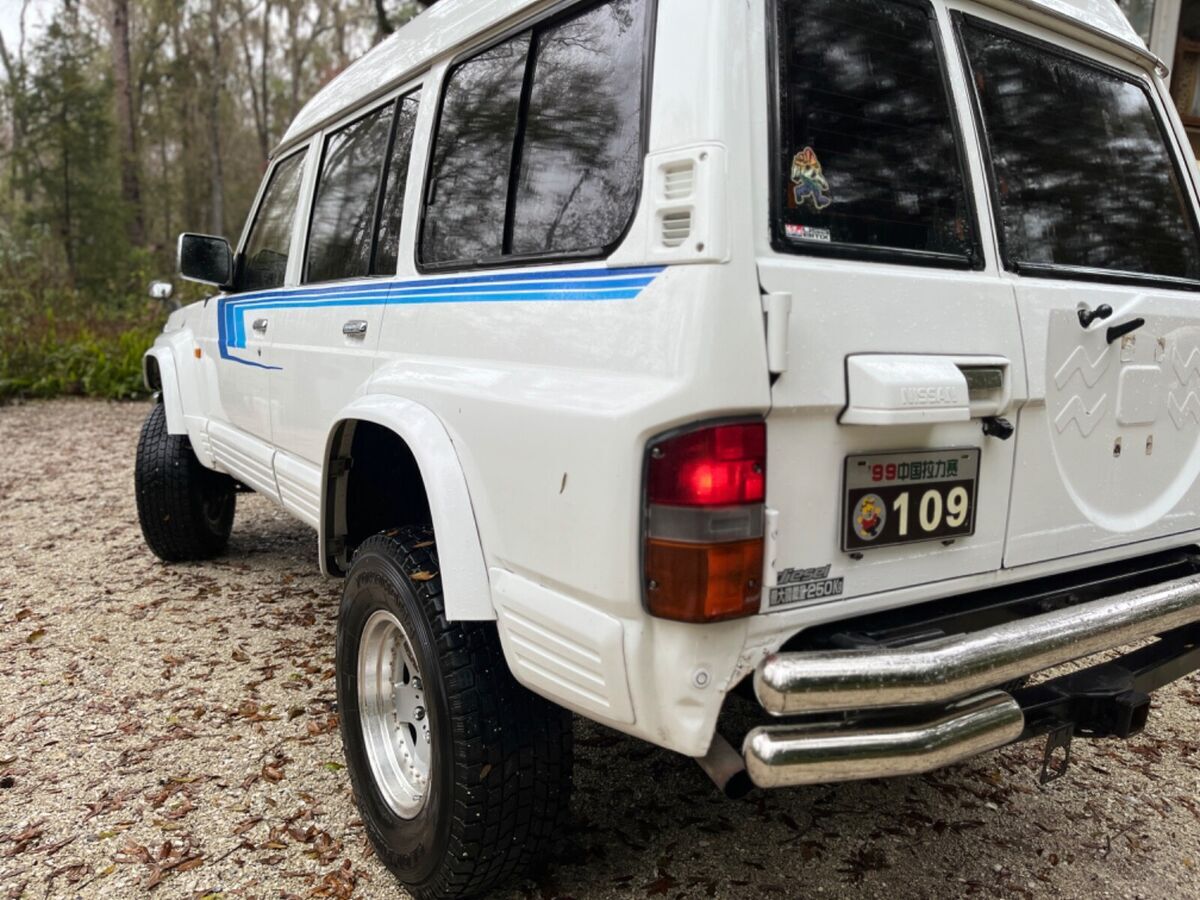 This awesome diesel Patrol / Safari is ready to daily drive. It starts right up, shifts flawlessly and runs strong. It’s a really great truck. If it weren’t necessary I wouldn’t sell it. Disclosures The roof has a dent from a tree branch, the rust is just from this last season, it buffs out and there are no leaks. Right rear passenger window sticks, the rear middle seatbelt is no good,no stereo, no pigtail. History You probably already know about the Y60, but if not; commonly sold as the Nissan Patrol, the same GRY60 model was available as the Safari in Japan. It was the first Japanese SUV with 4-corner coil-sprung live axle suspension and it was built to last forever.By introducing the first front three-link live axle and rear five-link live axle suspension on a Japanesepassenger vehicle,the Y60 redefined ride comfort for the class, on roads, rough terrain, and off road. Besting its competitors at Toyota and Mitsubishi, in the 1990s this motor and this truck were the King of Adventure. I brought this amazing 4500lb 1993 Safari over from Japan in 2020. Its got a 4.2 liter inline-6 diesel motor(TD42) with a five-speed manual transmission that makes 125hp. At 165,000 miles it runs like a train. Its got a 24V electrical system with 2025 batteries, a dual range transfer case, auto-locking front axle hubs, rear limited-slip differential (LSD), white paint, gray velour upholstery, 17″ alloy wheels, front & rear adjustable sway bars, front and rear disc brakes, steel braided brake lines, Rancho performance steering dampener, Fox Racing 2.0 Perf. Series IFP smooth body shocks, a steel front bumper, sliding quarter windows, split front & rear air conditioning, power windows (rear right sticks) and door locks, and power mirrors. Highroof headliner is 9/10. AC is beyond powerful. The 4L position drives SO good. Work Done It has been used entirely for fun. I did the fuel-pump and firewall fuel line, the brake rebuilds, the brake lines, the shocks, the alternator, the vacuum pump and lines, the AC gas, the batteries, the brake fluid, the transmission fluid, the motor oil, the transmission gear oil, the differential oil, the radiator fluid and the reservoir, the fuel filter, the air filter and the oil filters, the windshield nozzles and wipers. I did not do the Yokohamas, because they are unrelentingly strong (immortal tires?) and have not seen speeds north of 40mph since the end of covid. That, said the truck will do 100mph. I’ve towed stuff around the property a little too. I undid the fancy Pioneer stereo. Its got a hard drive of some sort filled with the worst music possible, collectors item? The trailer wiring was a messy seven wire, but a good circuit, its all under the carpet. Best Wishes I really wish I could have finished it for you - if you drove one when you were younger…much…, then you see where I was going. Add springs, tires, a little winch, a rack, extra lights, a fuel pre-heater and drier… and maybe never come back. |