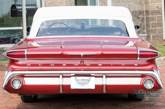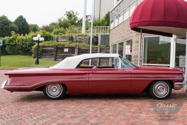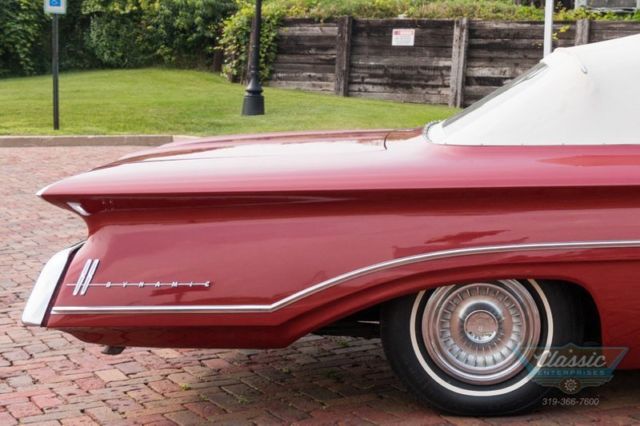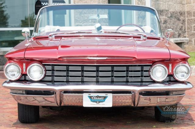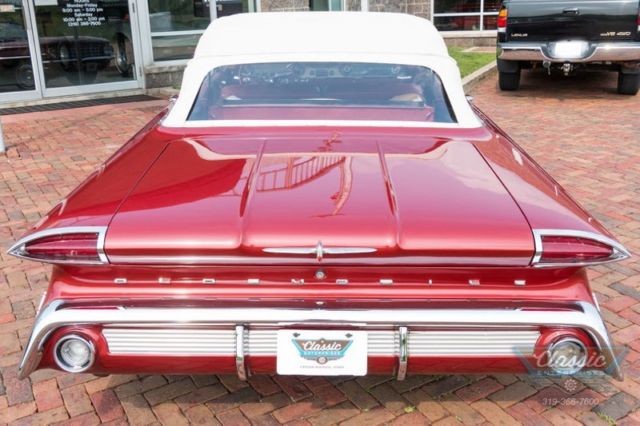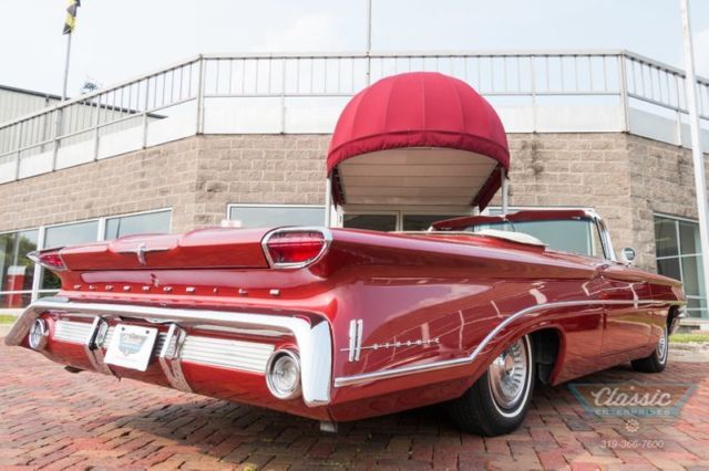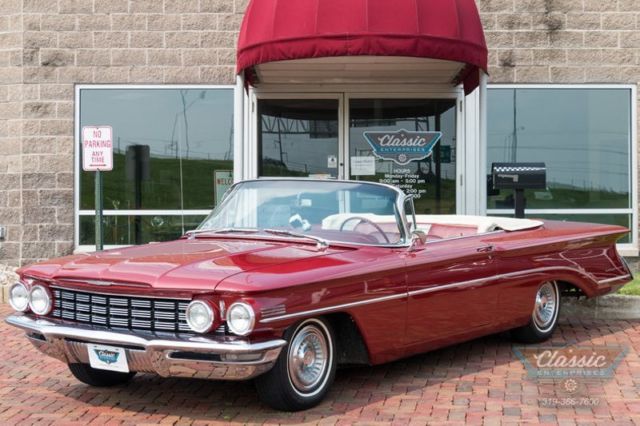 1960 Oldsmobile 88 ConvertibleThis 1960 Oldsmobile convertible is as nicely a restored car you will find with great detail. This one was the last car to come out of collection of a long time enthusiast that loved and respected all his cars. The quality of the work and materials is outstanding. This one is finished in the original color combinations and is true to original. If you want to enjoy a comfortable, reat running and driving open car don't miss out on this stunning example Features the original 371 CID Cast Iron V8Smooth Shifting Jetaway Hydramatic TransmissionFinger Tip Controlled Power White Vinyl Roof with matching Boot CoverFactory Power Steering and Power BrakesCourtesy Light Package with Trunk Light, ack Ups, tcExcellent Front and Rear BumpersFull Factory Display of Gauges and Twin Chrome Outside Rear View MirrorsOriginal new for 1960 Safety Spectrum 120 SpeedometerImmaculate Magic Mirror Gloss Garnet Mist Metallic Finish Code LCorrect Cranberry Moroccean Vinyl Trim Bench SeatOldsmobile Logo 5 station preset radio in the dashPremium JVC AMFM CD player hidden in the glove boxRock Solid Trunk with good Spare, at, ack, nd WeatherstippingCooper P225/75R14 W/Wall Radials on painted steel wheels with correct hucapsThere were only 12271 produced when is the last time you saw one this nicePerformance Tuned Dual Exhaust System with TurndownsVery nice fitted Canvas Car Cover Showing Pride of OwnershipOriginal Manuals and Owner Protection Plan includedSimply put here is a sweet running and driving Olds that looks great too