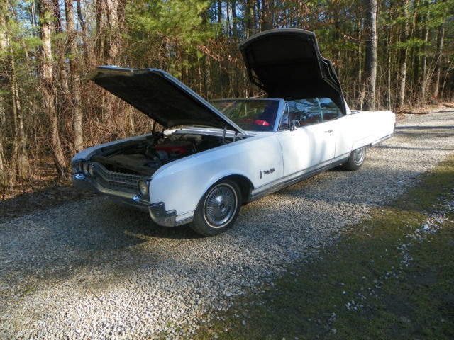 | 1966 OLDSMOBILE 98 CONVERTIABLE, RARE CLASSIC, EBUILT ENGINE, OOD TOP, O RUST, EW TRUNK LINER, UNS WELL. RECENT REPAIRS NEW FUEL PUMP/FILTER, EW HANDBRAKE, HEEL CYLINDERS, ACKED WHEEL BEARINGS and NEW CYLINDERS FOR TOP. LOW PRICE GREAT RIDE, O RESERVE! |