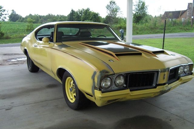 Running and driving 1970 Rallye 350 Cutlass, ery rare 1970 made only @ 2,200 of these cars, wned since 1987, riginal protect-o-plate and some paperwork, ebuilt factory rocket 350 with forged steel balanced crank, ebiult 700r O/D trans (also have factory t350), ew posi installed in rear end, lack bucket interior, glass house" non-post holiday coupe, eplaced headliner,carpet, nd driver seat cover. Interior nice except small tear in passenger seat and crack in dash. Frame pulled and cleaned/painted replacing: frame bushings,control arm bushings,sway bar bushings,upper and lower ball joints,brake hoses. Driven about 10 or 15k miles around town and trips since rebuild so its not clean like a show car. A/C currnently not working but changed over from r-12. No original air cleaner. Purchase can be made by cash in person or bank wire transfer and transporting is buyers responsibility.