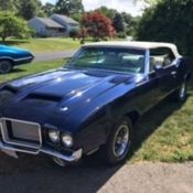 1972 Oldsmobile Cutlass/442 Convertible Code 75 Matador Red This Oldsmobile up for auction is the perfect candidate to restore over the upcoming winter months. Great father and son project or for the high-end restoration company that knows what these cars are worth when they are restored to a high level. If you have been looking for that classic muscle car investment then thisrare real Matador Red Convertible just may have your name on it! These 1970's muscle cars have incredible investment potential and have been referred to as rolling bank accounts. Remember, when the top goes down the price goes up! We just had this droptop delivered from Maryland last weekend. The gentleman we made the purchase from said he lost interest in doing the restoration this sweet convertible so well deserves. My buddy had found the car and wanted me to be in on the restoration and I simply don't have the time or the room to store the car, so it is being offered on a quick 3-day auction selling with "No Reserve" to the highest winning bidder. It has not been started for several years, so getting it running will be up to the new owner. The battery was from April of 2010 and does not hold a charge. It is very hard to find an original code 75Matador Red 442 with a white convertible top and a white bucket seat interior with the original numbers matching Rocket 350 engine. Even the original valve cover and air cleaner breathing tubes are still in place. The data plate proves that this car is what it is. The 977 means it was ordered from the factory as a white bucket seat console car. The awesome dual scooped ram-air induction hood does have a steel frame, but I don't know if it is genuine G.M. Everyone who knows these cars knows that this color and interior combination is the most popular and most desirable. I saw no evidence of any accidents and believe all the body panels to be original to the car except for the cool ram-air hood. Every part on this car will need restoration to bring this convertible back to its former glory. The entire interior still shows in relatively decent condition as seen in the pictures, but if I were doing the car I would have everything freshened up with new material. The console is missing the door lid, but those are available at a wide variety of aftermarket suppliers. The carpeting is newer and I could see the extra padding was used, so I believe the carpet can be used in the restoration process. There is a set of fourbrand new black carpetedfloor mats. I did not see any cracks in the dash board and the chrome trim around the dash is still in place which holds the original AM radio. There are no cracks in the windshield. This Olds rides ona set of four Widetrack S/R Radial raised white lettered steel belted radial tires with good tread mounted on a set of 15" inch Super Stock II wheels painted to match the body. All four wheels have chrome lug nuts, and a locking lug nut with the key in the glove box. The wheels have all four center caps andall fourbeauty trim rings. It looks like someone added the power trunk option, but the locking mechanism doesn't look like an original Oldsmobile factory trunk release attached to the trunk lock. The front and rear floors are all original with no patchwork that I could see and in my opinion look in really good condition for a 44 year old car. The frame is equally as good. There is a 10-bolt rear-end, but I am unsure of the gear ratio. The trunk floor seems like it has the original trunk mat still in good condition. The trunkcarries a full size spare tire with the correct jack, jack stand, bumper mount,and crow bar. It's always good to have a spare in case there is a mishap on the road. The chromelooks to be all there and in drivers quality condition. ThisOlds was factory ordered with power steering and power disc brakes with a power convertible top. The original 1972 Cutlass/442 owner's manual is included inside the glove box. The convertible does not have any cuts in it, but there is a minor patch on the passenger side as shown in a picture. The rear window is plastic and has yellowed over the years. Most likely the new owner would want to replace the top after the car is restored and add the glass window option. The convertible top California boot cover is still attached above the back seat. The top motor does work in the up and down position from the switch on the dash. I have owned many of these cars over the years and I can see that mostly all of the original parts are in place. According to the OldsFaqs websiteonly 1,025 of the Cutlass Supreme/442 convertible models were made with an automatic transmission in 1972. They said whether this model is a real 442 or a converted Cutlass Supreme it is still considered to be like a real 442 if it is converted properly. If it were a real W-30 it would have an X in the vehicle identification number. The fender wells were only red on the very first 10 1972 W-30's that rolled off the assembly line in December of 1971. I'll give a little background on the 1972 Oldsmobile Cutlass Supreme, Cutlass S,and 442 models. Prior to the 1972 model year the vehicle identification numbers in all 442's started out with 344. That was the way to determine whether that specific car was ordered from the dealershipas a true442. This is easily verified by the OldsFaqs website that anyone can look up online. The 442 could be ordered as a separate model for the last time in 1971. Oldsmobile decided to make the 442 an ordered option starting in 1972. The OldsFaqs website made the statement that there is no such thing as a fake 442 in 1972. All 1972 442 convertible models started life as a Cutlass Supreme, since the 442 was an ordered option. Whether the car was factory ordered as a 442, or dealer installed, or a private owner installed all the 442 options, they are all considered Cutlass Supreme or Cutlass S bodies. This is why all 1972 442 convertibles have Cutlass Supreme on the glove box door, and all 442 hardtops have jus