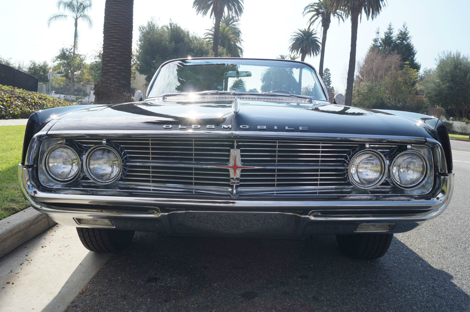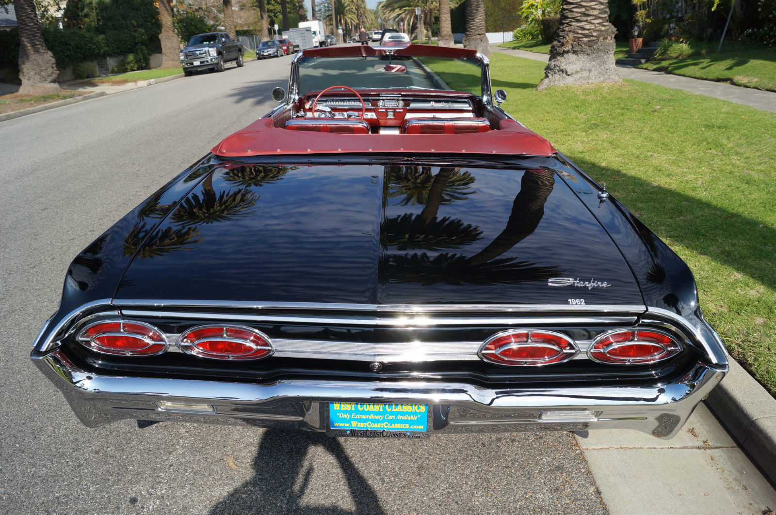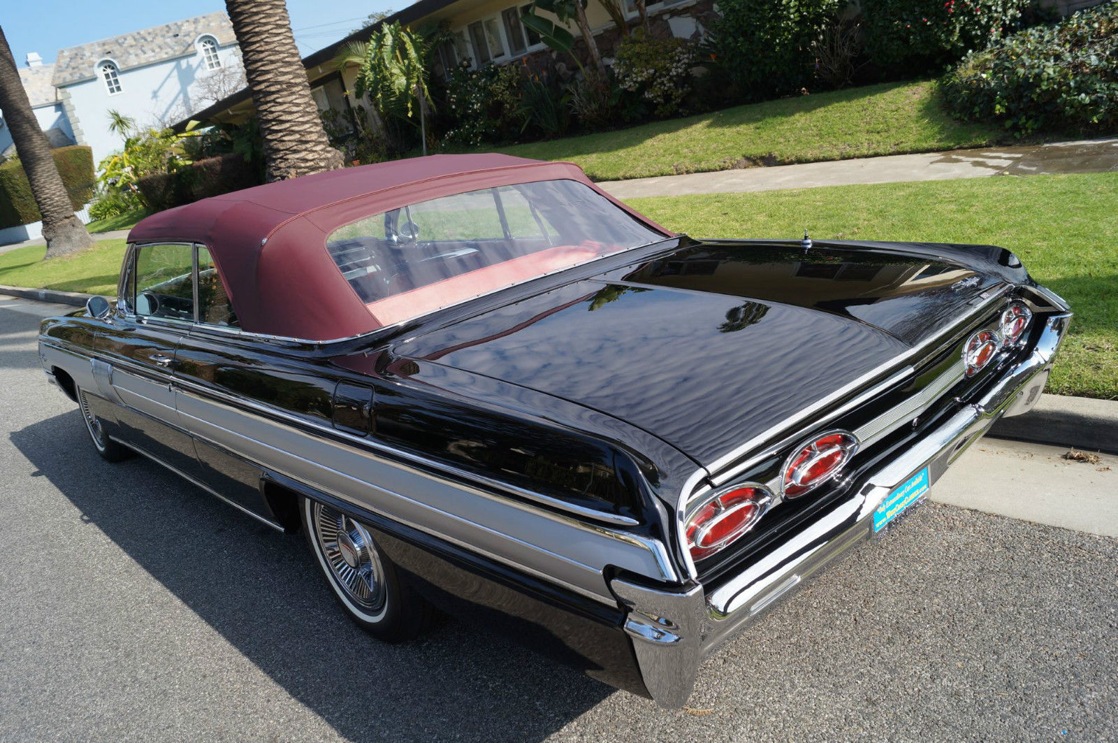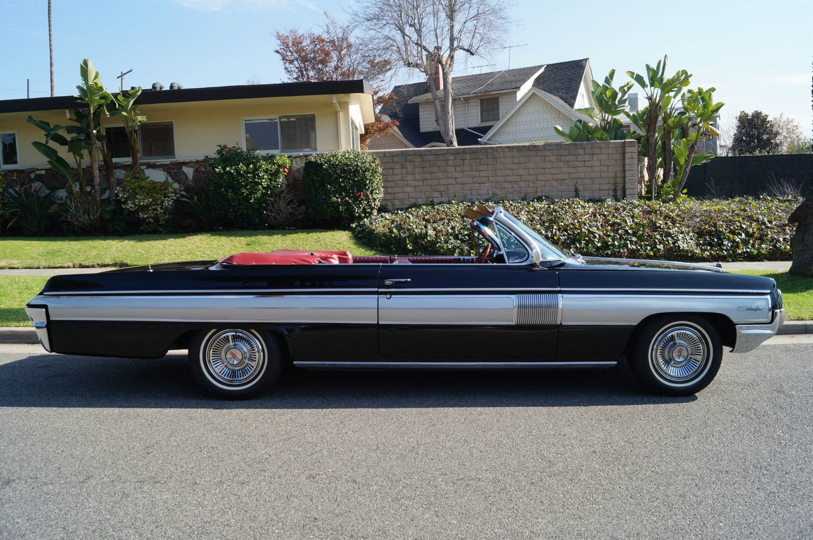| Please note that experience shows us that the photobucket of over 100 large pixel pictures posted here are in most cases best viewed and downloaded using the very latest and most updated version of the 'Firefox' browser as some other browsers and especially older browser versions are not capable of accommodating the size of the download. Over the years our clients have overwhelmingly been appreciative of our many unaltered large pixel photos posted in our ads and our feedback has been that it is very rare that a dealer will post all but the most flattering of professionally finished photographs. We prefer to post the many photos taken of the car. in sometimes unflattering but natural sunlight. in order for our prospective buyers to be able to see true and reliable images of the car advertised and that is the reason for some seemingly duplicated shots. We trust you will agree. West Coast Classics are proud to present an absolutely stunning and virtually flawless and only a few years old frame off restored example of this very desirable 1962 Oldsmobile Starfire 394/345HP V8 Convertible with factory options including: Starfire V8 Engine with 10. 50-1 Compression. igh Speed Cam Shaft. ltra High Compression Cylinder Heads. ual Exhaust System. pecial Fiberglass Packed Muffler. Foam cushioned Leather Bucket Seats. achometer. -S Hydra-Matic automatic transmission. Power Top. ower Steering. Power Brakes. Power drivers seat. Power Trunk Release. ower Antennae. lectric clock. Courtesy lamps. Soft ray tinted glass. Original Wonderbar AM radio. Console with shifter. Windshield Washers. utside rear mirrors. Original Owners Manual. The Starfire was Oldsmobile's entry into the personal luxury market built on the Super Eighty-Eight's 123-inch wheelbase frame. The list of standard equipment included a more powerful V8. Hydra-matic drive. sports console with shifter. tachometer. courtesy lamp package. two-speed wipers. power brakes. power steering. brushed aluminum trim. dual exhausts and leather trim. Oldsmobile introduced the new Starfire in mid-1961. It was a high performance. high style. luxury automobile that was true to the company's rich performance history and offered a host of distinctive features. The Starfire returned for 1962 to include a hardtop variant. Priced around $4. 00 for the Starfire Hardtop Coupe and $4. 44 for the Starfire Convertible; the cars were equipped with all the features found in the Super Eight-Eight plus brushed aluminum side panels. a sporty cockpit featuring bucket seats. leather upholstery. floor console and power-operated front seats. Power was from a 394 cubic-inch V-8 engine that offered 345 horsepower and 440 pound-feet of torque. courtesy of a Rochester four-barrel carburetor. 10. 5:1 compression. a revised camshaft profile. an efficient combustion chamber design and a free-flowing dual exhaust system. The Oldsmobile Starfire was easily distinguishable from its Super 88 counterparts by the addition of brushed aluminum side panels. Arguably this was the first muscle-car from Oldsmobile since it combined a very powerful engine in a small. compact body. The Starfire's sporty and luxurious hardtop coupe and convertible embodied the personal luxury cars for Oldsmobile with leather bucket seats. sport and special luxury trim. "Distinguished . . Distinctive . . Decidedly New" was how Oldsmobile advertised their all new 1961 first full-fledged Starfire series. Oldsmobile chose the General Motors 1961 Motorama which opened on November 3. 1960 at the Waldorf-Astoria in NYC to debut the new one-model series. This series remained until the revolutionary Toronado picked up the Oldsmobile personal-luxury banner. At select Oldsmobile dealerships in January 1961 the first Starfires began arriving. On the outside the Starfire included two slim parallel hood moldings and a 4-inch wide band of brushed aluminum on the sides. touches which were exclusive to the Starfire. The 1961 Starfire also sported a chrome-plated air cleaner perched on top of the four-barrel carburetor and shiny valve covers and oil filler cap. Burning only premium fuel. the Starfire had a 10. 25:1 compression ratio. Another unique advertising campaign was a direct-to-dealer piece that urged dealerships to stage special open houses to showcase the new model and gave interested dealerships with up to 500 invitations and envelopes. This particular example is an older frame off restored example and beautifully finished in its original factory (Color Code A) 'Ebony Black' color paint over its original brushed aluminum side panels with a very striking original (Trim Code 935) 'Red over Garnet Mist' two-tone interior with a matching color soft top. the car looks extremely impressive and is still in virtually flawless condition throughout. All the factory options are working as they should and the car has all it's original logos and its original radio and the brightwork design on the dashboard. the dashboard itself. the convertible soft top. the carpets and all the seats are in virtually flawless condition! All the chrome work is also virtually flawless and the original spare wheel and jack is in the trunk. This particular car also obviously drives absolutely magnificently - must be driven to be fully appreciated - drives straight as an arrow with no strange road wobbles. shakes or rattles - a truly remarkable daily driver that will really give any modern day sports car a run for it's money! The transmission shifts smoothly through all the gears and the temperature always remains cool! Drives exactly as it must have when brand new! It is hard to pin down the first actual muscle car; some have asserted that it is the 1949 Oldsmobile Rocket 88. which was built with speed in mind and with an overhead valve V8 placed in a mid-size car with a relatively lightweight body. A lot of observers cite the next big step in the evolution of the early muscle car to be the introduction of the 1955 Chrysler C-300 with its 300 horsepower