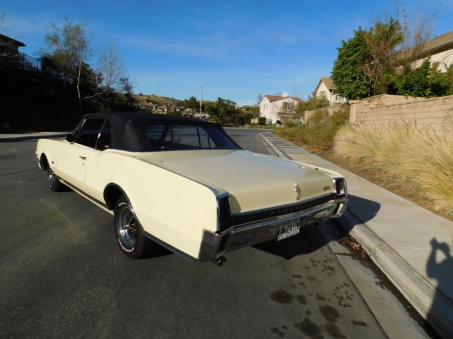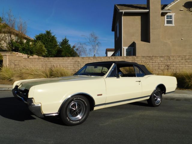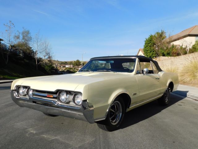 ...NO RESERVE.......1967 OLDSMOBILE 442 CONVERTIBLE...4 SPEED CAR.........WOWOne of only 1100 Oldsmobile 442 convertibles built with a 4 speed in 1967 and one of only maybe 50 known to of survived over 50 years.This 442 convertible has power steering, power brakes, power convertible top, bucket seats and of course the most important item a 4speed Hurst shifter making it one super fun true muscle car.With winter ending soon summer will soon be here with car shows, cruises and Sunday afternoon ice cream runs.And does this ever get the attention not being just another Mustang, Camaro or GTO this is true Americana by the numbers 4-4-2.This car does start, run and drive excellent right now and looks great.This great 442 was stored for years and is currently being dialed in at one of Southern California's top mechanics shop to run and sound like new and will be 100% ready for the highways and roads of America by the end of this auction. This is a super clean, super honest Oldsmobile 442....4speed...convertible in Saffron yellow at ..NO RESERVE. PLEASE DO CALL WITH ANY QUESTIONS AT ALL...THANK YOU................(805) TWO-ZERO-SIX-ONE-TWO-EIGHT-FOUR |