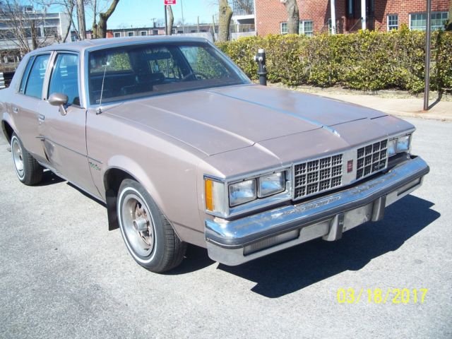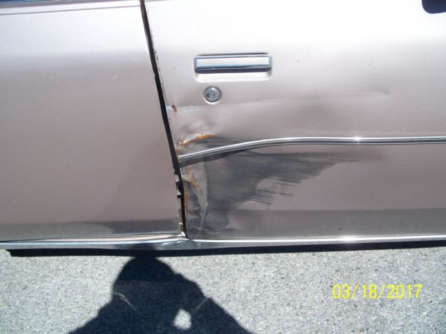 ****NOTE THESE PICTURES WERE TAKEN 03/18/18 DIDNT REALIZE DATE WAS WRONG******OK THIS 1984 OLDSMOBILE CUTLASS SUPREME 4DR SEDAN HAS 56K ON IT IT RUNS/DRIVES/STOPS AS IT SHOULD PAINT LOOKS TO BE ORIGINAL HAS SOME BODY DAMAGE ON PASSENGER SIDE TWO DOORS AND SOME MINOR ON DRIVERS SIDE FRONT FENDER ALSO ON LEFT SIDE HEADLIGHT FRAME(SEE PICS) THE BROWN CLOTH INTERIOR HAS SEAT COVERS ON THEM THEY ARE STARTING TO TEAR BUT THE SEATS ARE EXCELLENT SHAPE,DASH IS CLEAN AS IS THE RUGS THE HEADLINER HAS BEEN TACKED BACK UP.THE CHROME BUMPERS ARE RUST FREE ALL DOOR PANELS ARE GOOD FLOORS/TRUNK/CHASSIS ARE IN EXCELLENT SHAPE.IT HAS POWER STEERING,POWER BRAKES,AC,DELAY WIPER,REAR DEFOGGER,SPORT MIRRORS,ORIGINAL RALLY RIMS(MISSING ONE CENTER CAP) AND LIKE NEW TIRES,HAS AFTERMARKET RADIO(FACE IS MISSING) ANOTHER RADIO WILL BE GIVEN IN ITS PLACE(CD PLAYER)THE 3.8 MOTOR RUNS WELL AND THE TRANSMISSIONS SHIFTS WELL.THE CAR SITS UP HIGH GUESSING IT HAS NEW SPRINGS AND OR SHOCKS DONE.THE DAMAGE ON SIDE DOESN'T STOP THE TWO DOORS FROM OPENING AND CLOSING/LOCKING AS THEY SHOULD.YOU CAN HAVE A NICE CAR IF YOUR A BODYMAN OR FIX IT PUT ON 22'S AND"DONK" IT.YOU CAN LOWER IT AND BE LIKE "LOW RIDER".OR TAKE THE SIX OUT ADD A V8 TO IT IF YOU HAVE A MOTOR FOR IT.I HAVE A CLEAN TITLE FOR IT.NO WARRANTIES BECAUSE OF DAMAGE STRICTLY AS IS CONDITION...IT DOES HAVE 56K AND IT RUNS/DRIVES/STOPS NORMALLY HAPPY BIDDING****PICTURE DATE IS 03/18/18*****