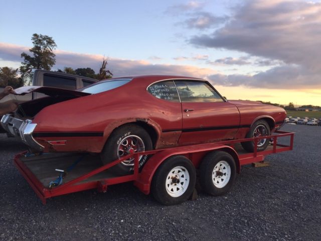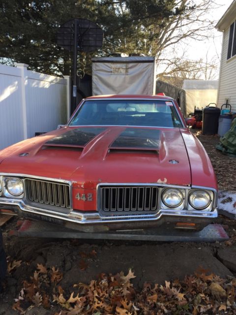 | This is a TRUE 442. The car has (2) engines, the one in the car is a 1971 455 big block. The MATCHING # block & heads are with the car. The car has been inside garage since 99. The car has PW,PB,PS,A/C (no compressor). The car needs COMPLETE restoration, but car has good bones. |